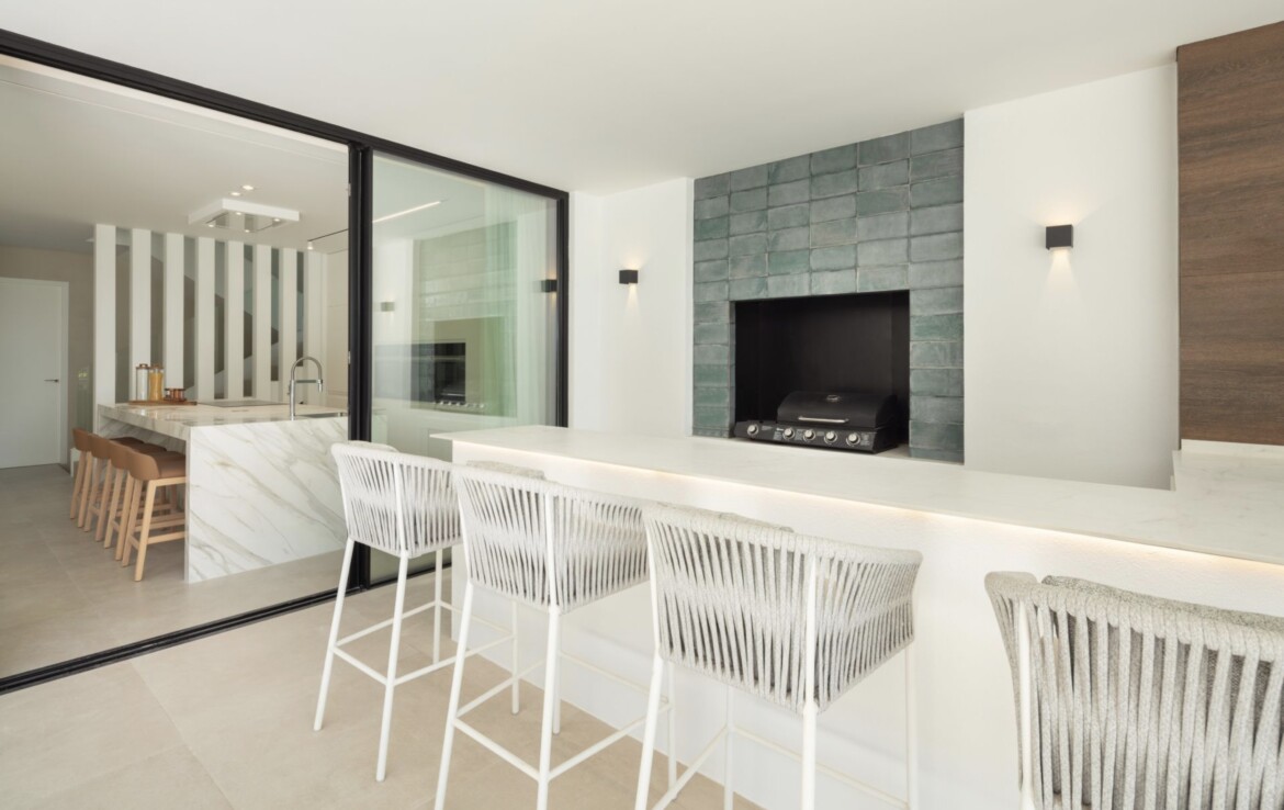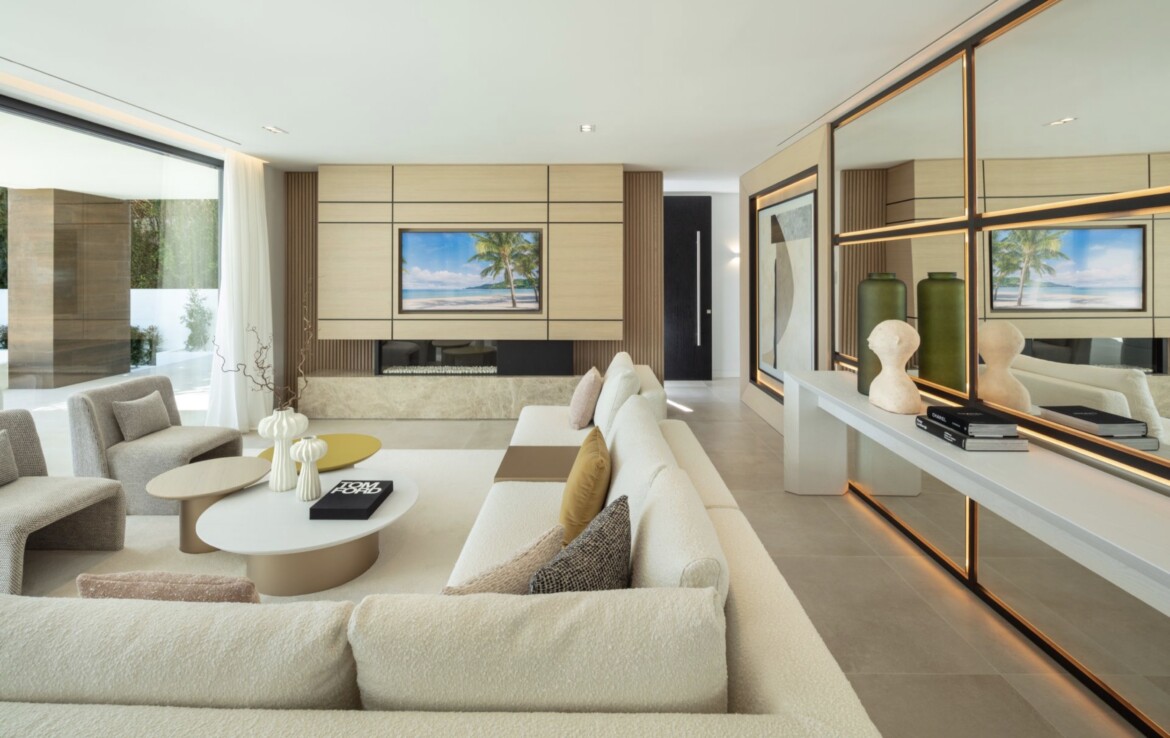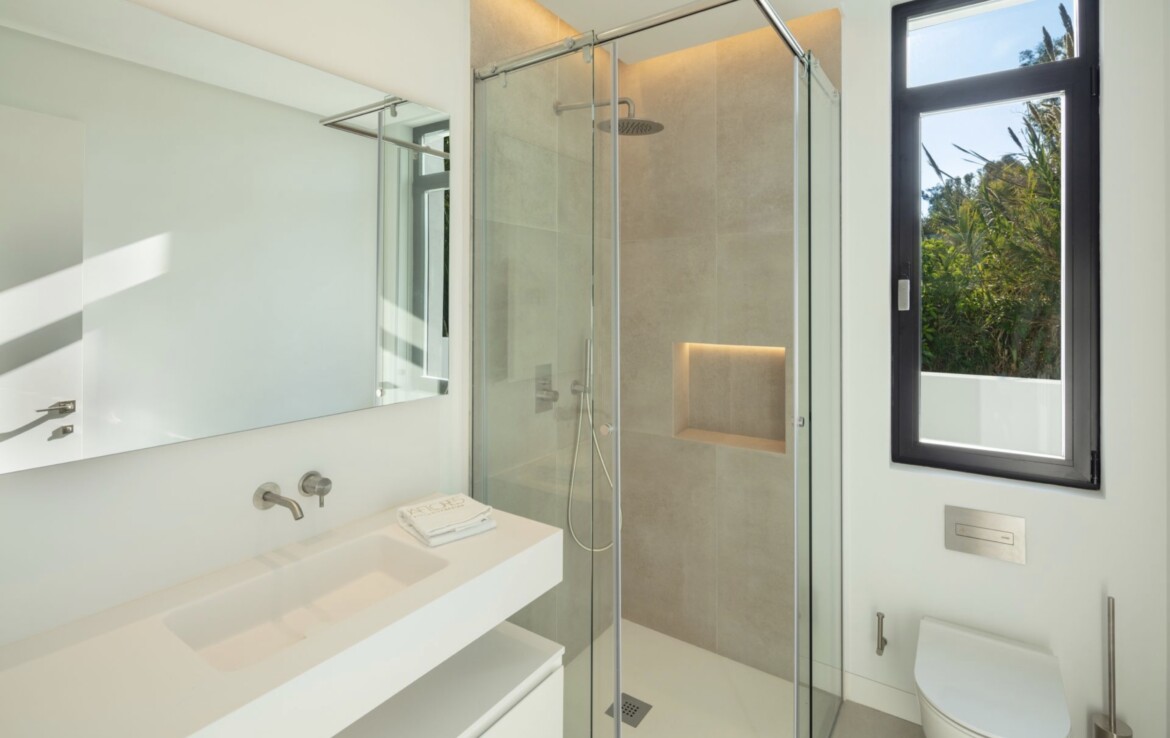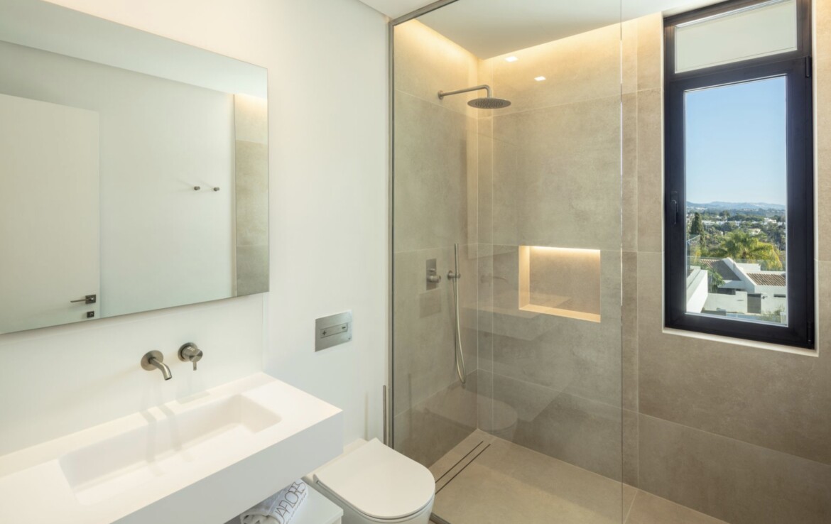 With its ideal east-facing orientation and breathtaking views of La Concha, this outstanding contemporary villa is flooded with natural light all day long. Situated in the prestigious Golf Valley of Nueva Andalucía, it offers an unparalleled blend of style, comfort, and prime location. The property’s architecture is synonymous with luxury and elegance, crafted with high-end materials that beautifully decorate the property’s exterior. Villa Camellia also boasts plenty of floor to ceiling windows and glass sliding doors, ideal for letting in an abundance of natural light. The generous exterior terraces allow for enjoying the outdoors and 320 days of sun Marbella offers its residents. The bespoke solarium equipped with a jacuzzi is perfect for indulging in the luxurious Marbella lifestyle.