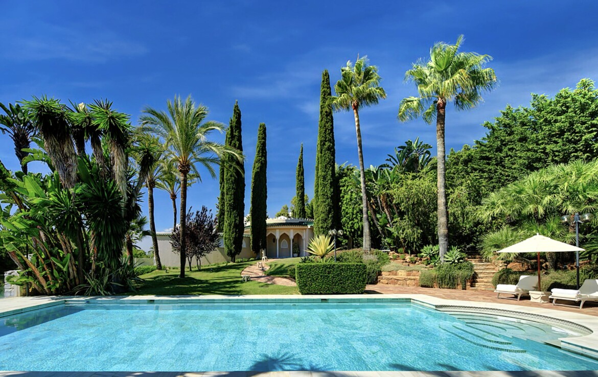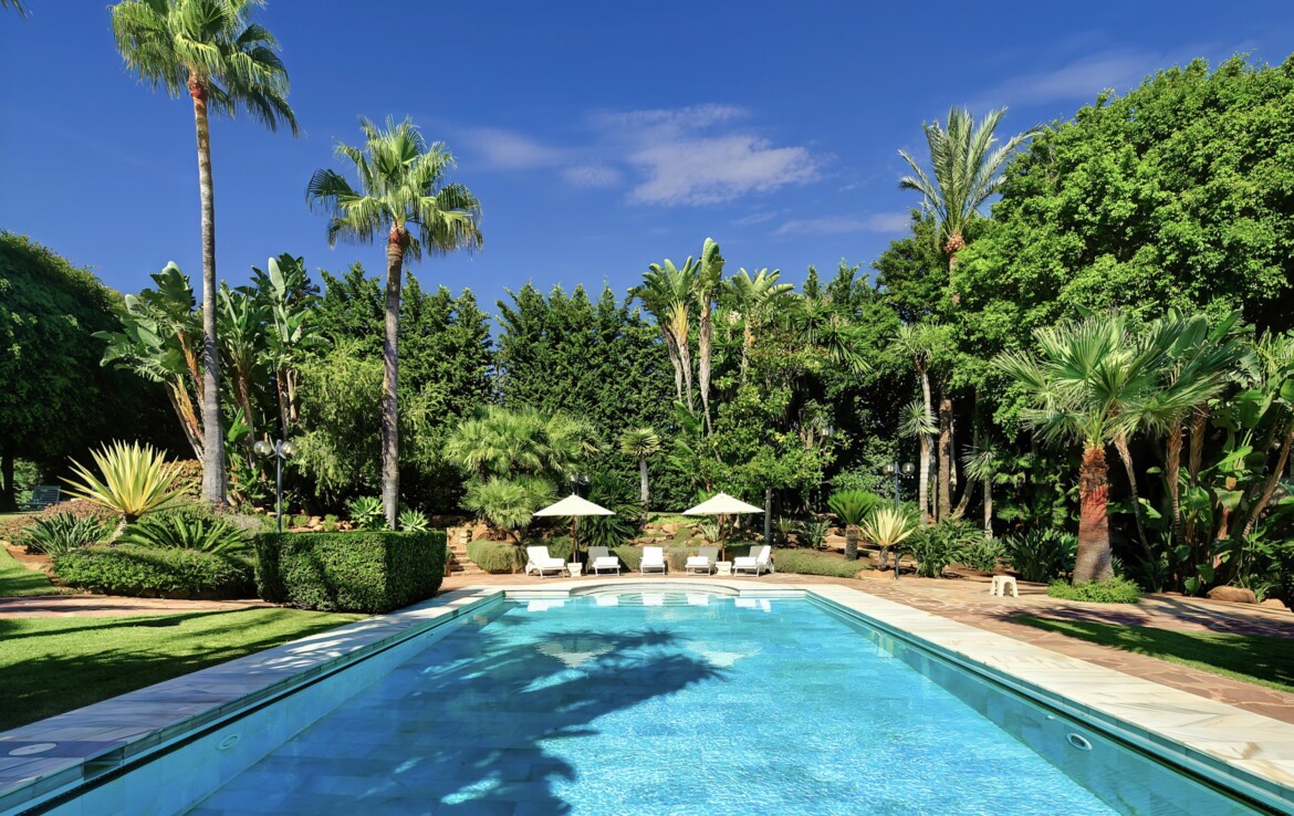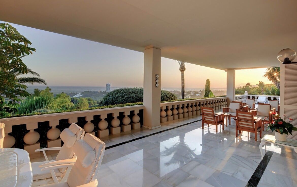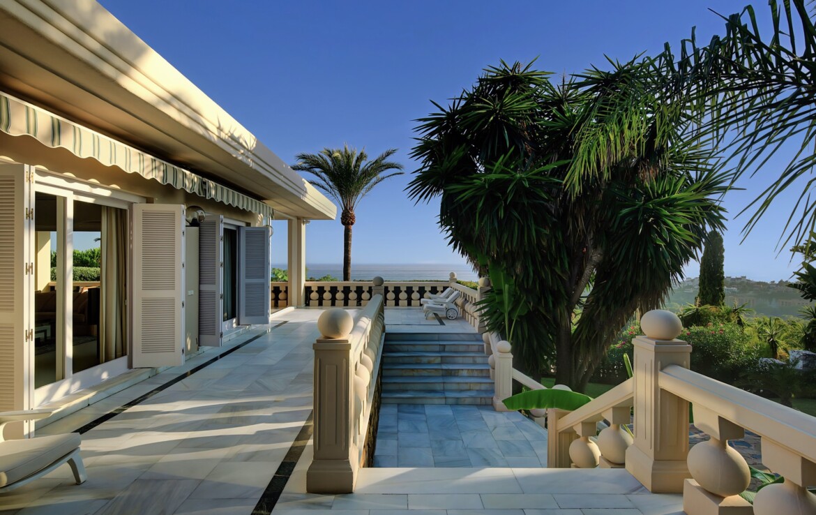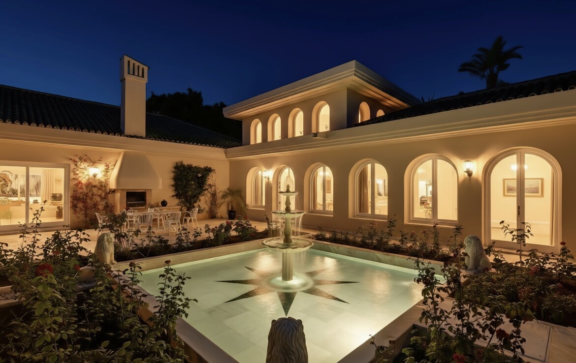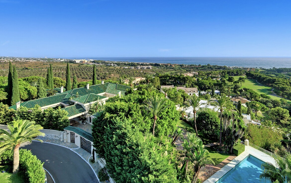 Villa Mandaluz is an extraordinary, detached villa in Río Real, Marbella East, offering a rare combination of classic Andalusian elegance and limitless potential for modern transformation. Perched atop a private hill, the property commands uninterrupted views over the Mediterranean Sea, lush golf courses, and rolling green valleys, creating a serene yet striking environment. With a vast plot of 5,775 m² and 2,600 m² of living space, this estate presents an exceptional lifestyle opportunity for discerning buyers seeking privacy, luxury, and architectural flexibility.