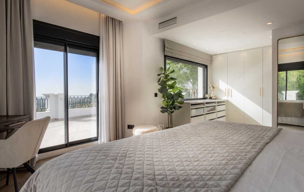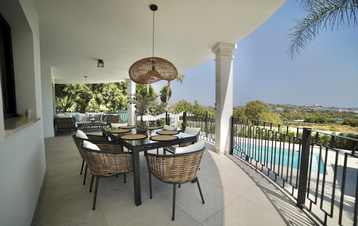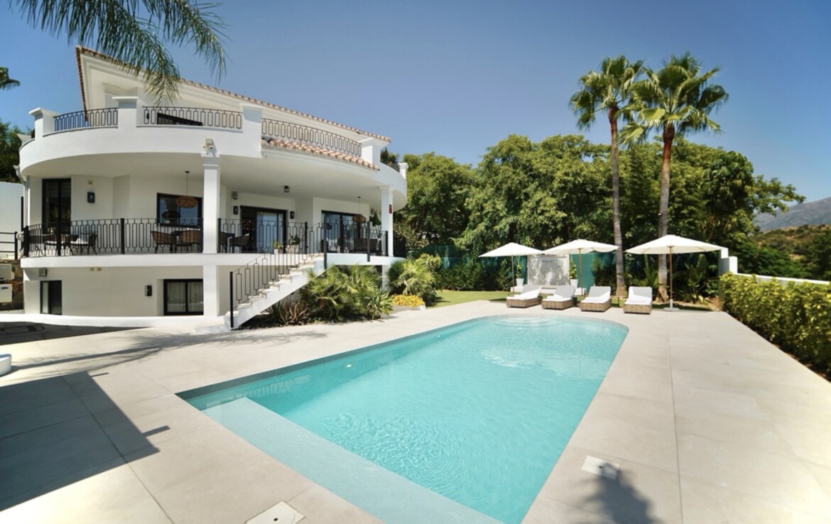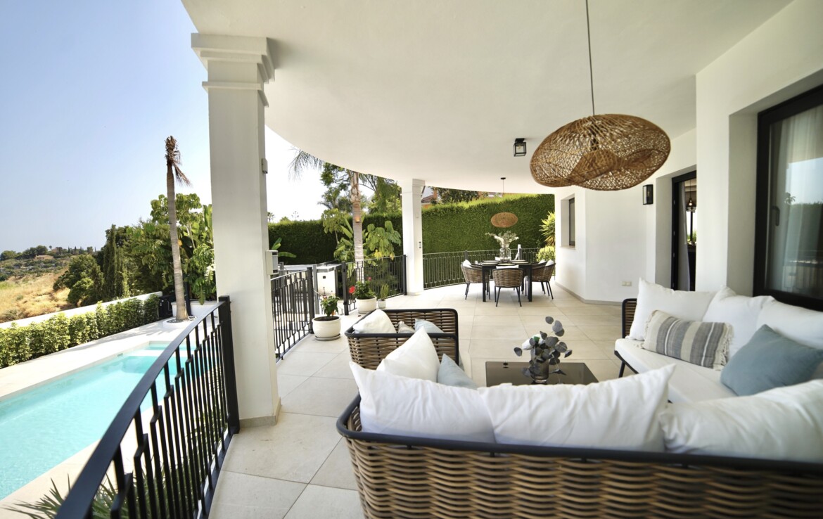 Nestled in the prestigious La Quinta area of Benahavis, this stunning 303-square-meter villa (386 sqm including terraces) sits on an expansive 765-square-meter plot, offering an unparalleled blend of luxury living and natural beauty. With its coveted south-facing orientation, the property is bathed in natural light throughout the day while providing breathtaking panoramic views of the sea, golf course, and surrounding mountains.