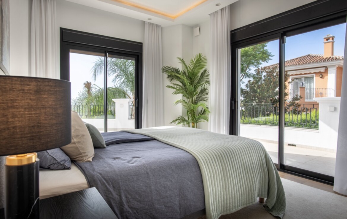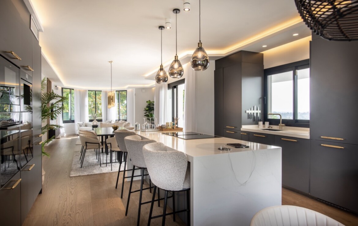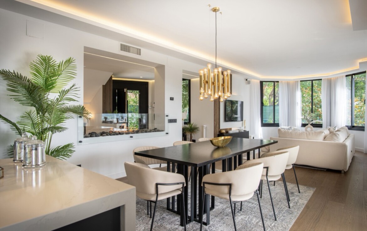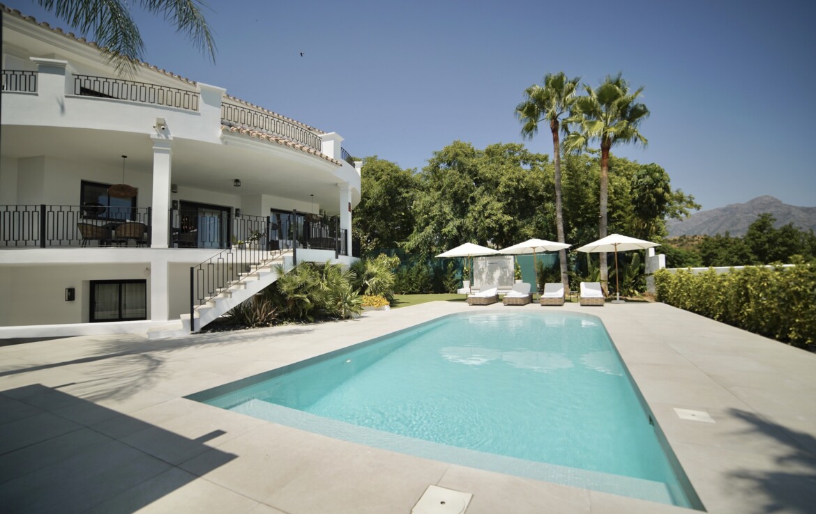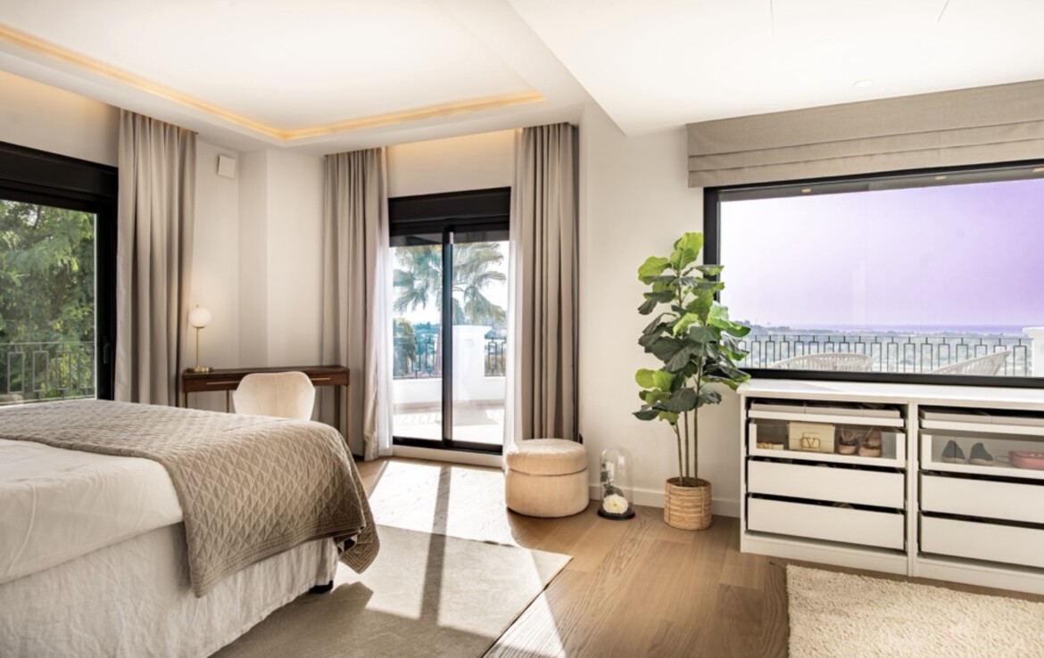 Nestled in the prestigious La Quinta area of Benahavis, this stunning 303-square-meter villa (386 sqm including terraces) sits on an expansive 765-square-meter plot, offering an unparalleled blend of luxury living and natural beauty. With its coveted south-facing orientation, the property is bathed in natural light throughout the day while providing breathtaking panoramic views of the sea, golf course, and surrounding mountains.