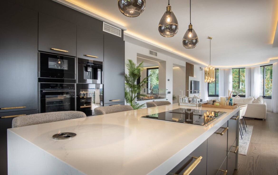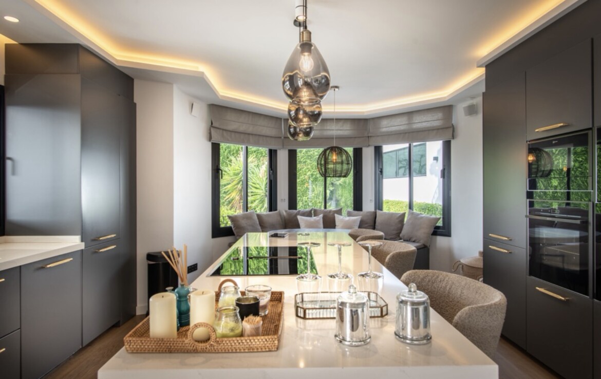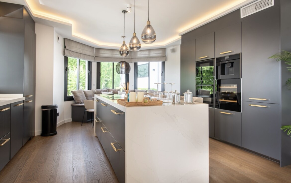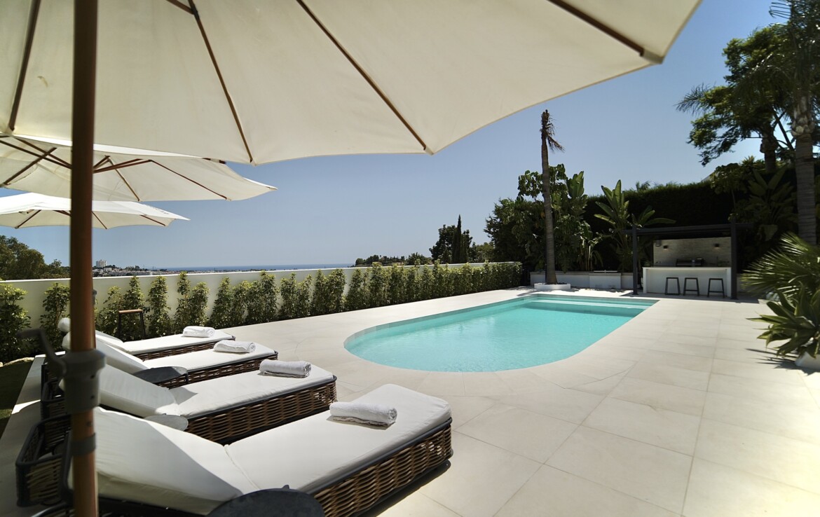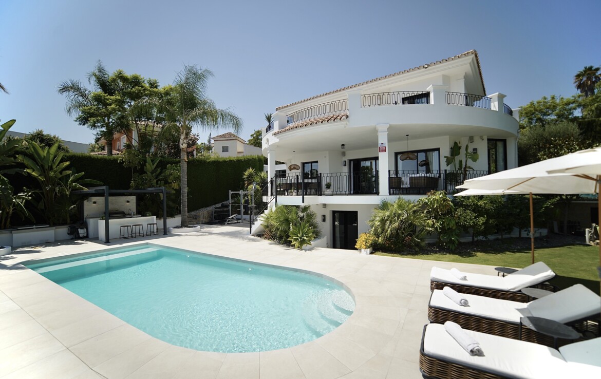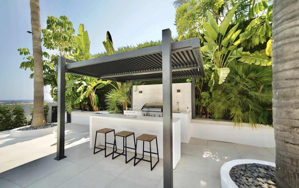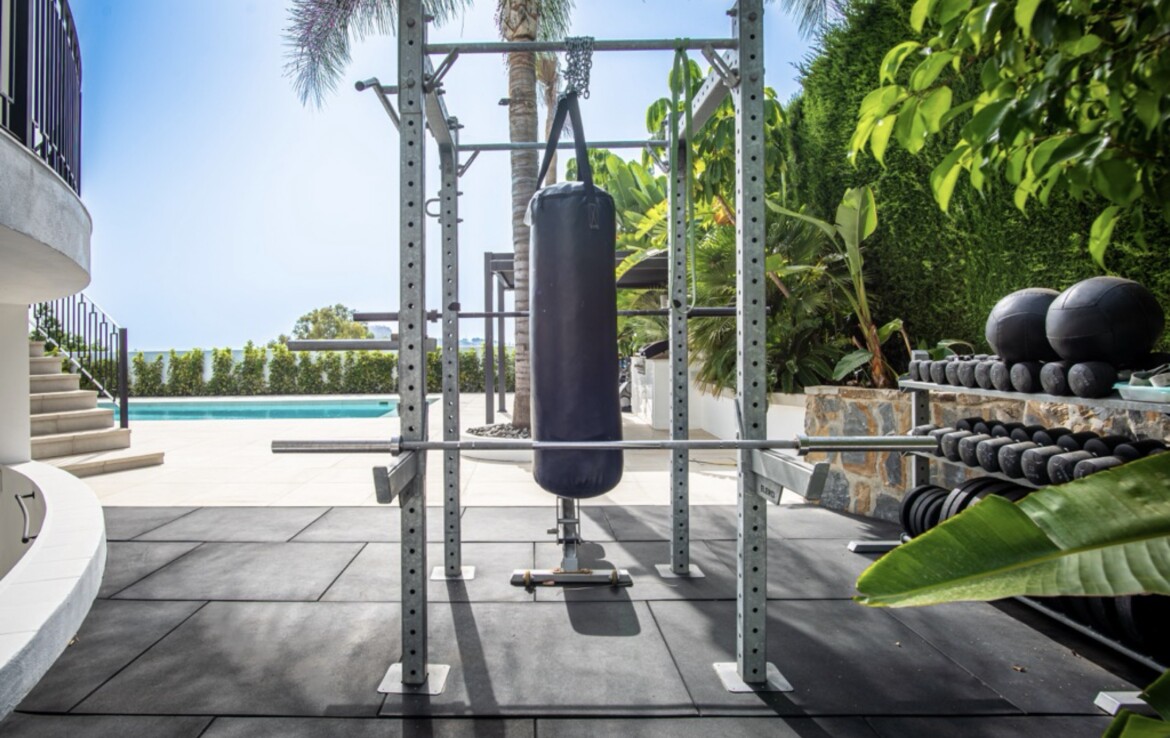 The thoughtfully designed home features five spacious bedrooms and five bathrooms, ensuring comfort and privacy for family and guests alike. The outdoor living experience is truly exceptional, with a private garden showcasing a sparkling pool, fully equipped outdoor kitchen, and a dedicated gym area – perfect for embracing the active Mediterranean lifestyle. The property includes a generous two-car garage, providing secure parking and additional storage space.
