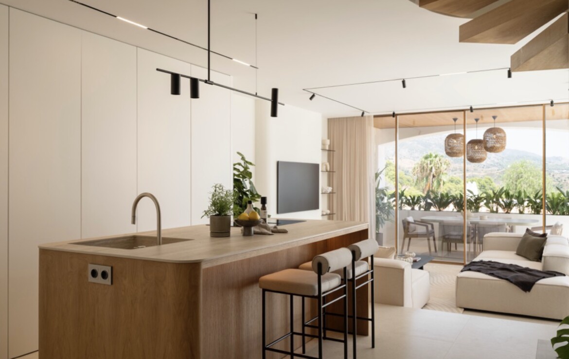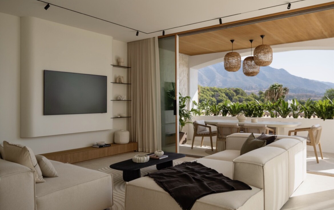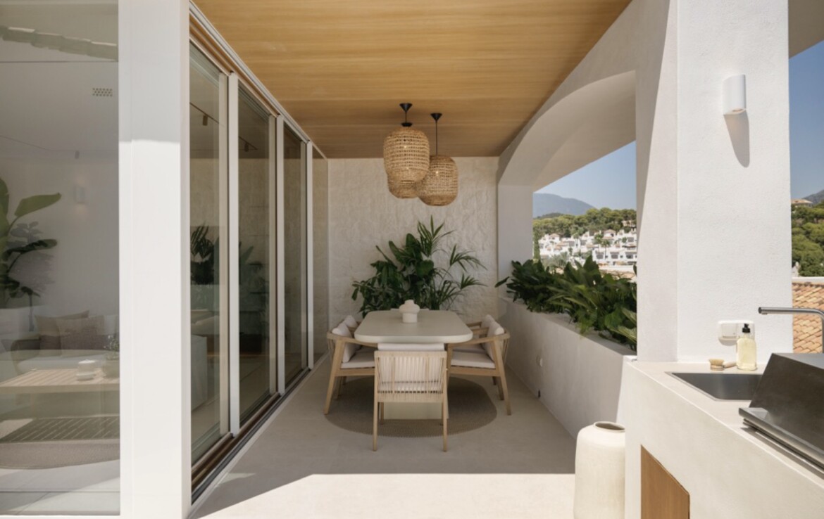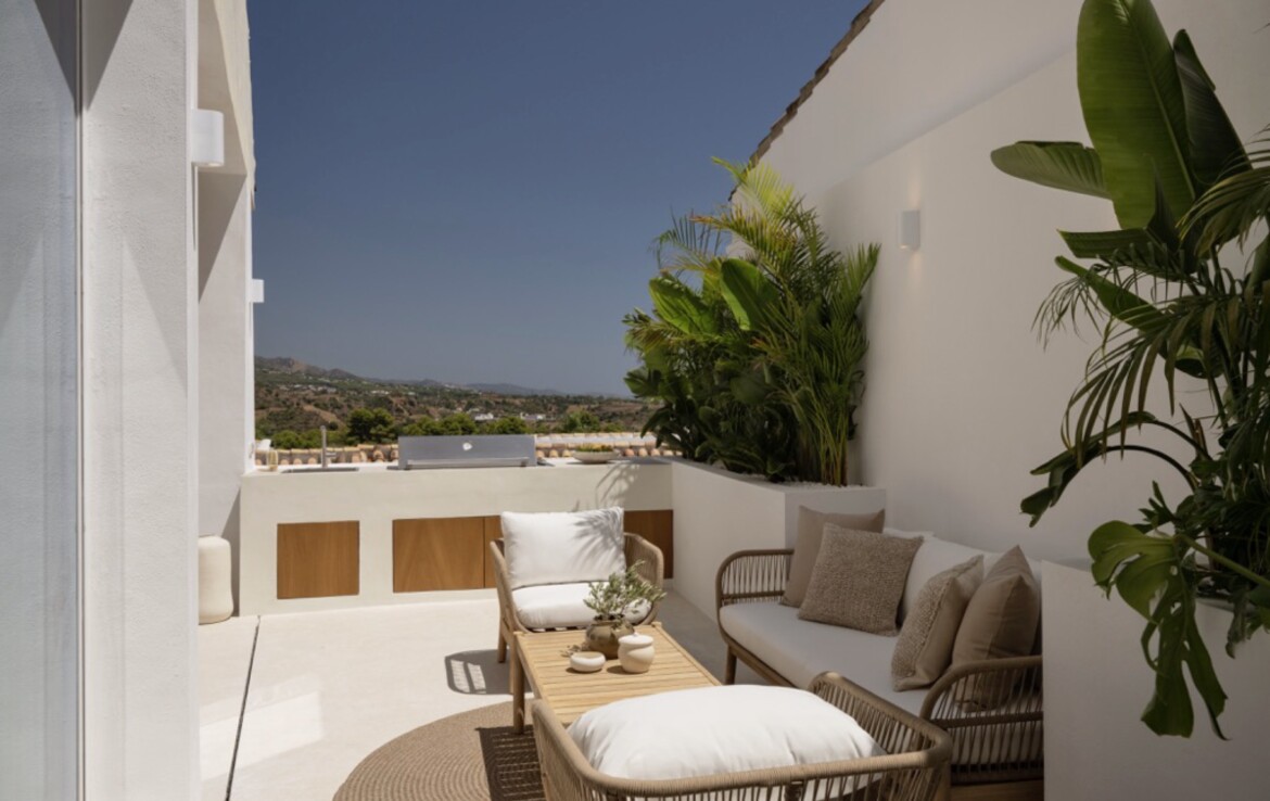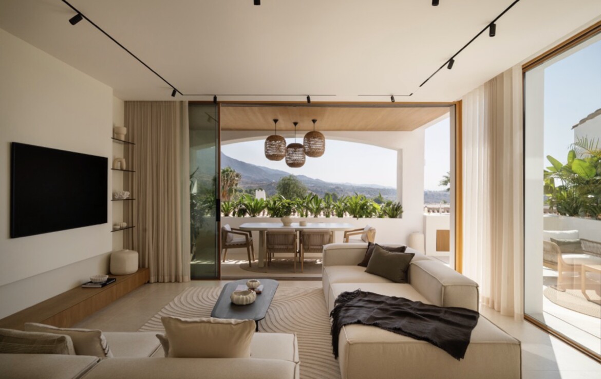 The open-plan living spaces seamlessly connect to a spacious 80 m² terrace, the perfect setting for gatherings, al fresco dining, or simply enjoying the stunning views of La Concha Mountain. A private jacuzzi adds a touch of indulgence, inviting you to relax in total serenity.
