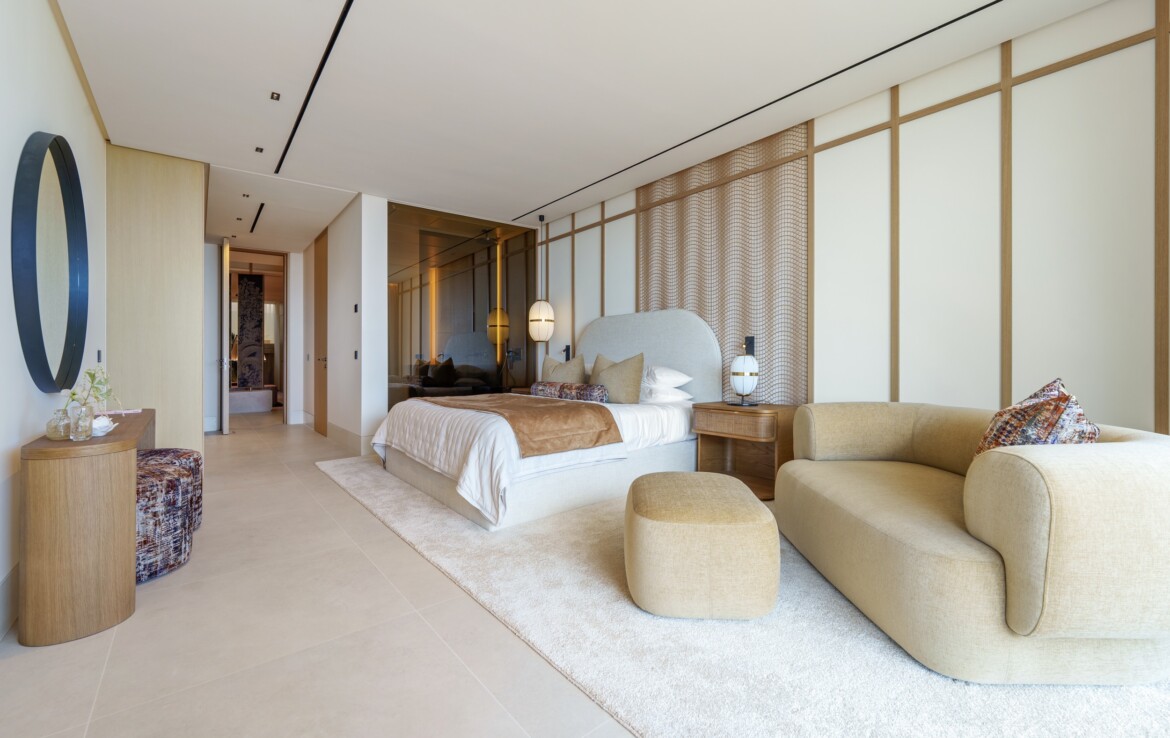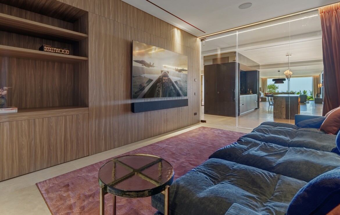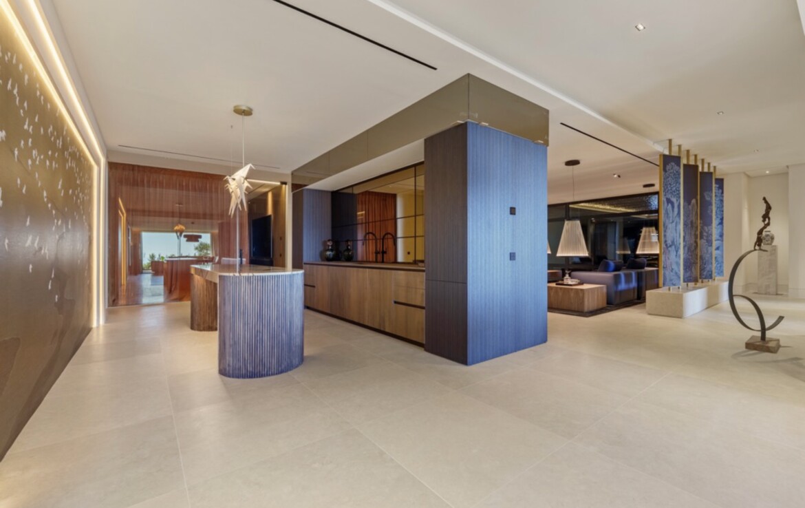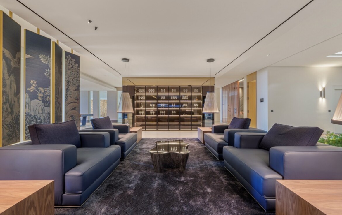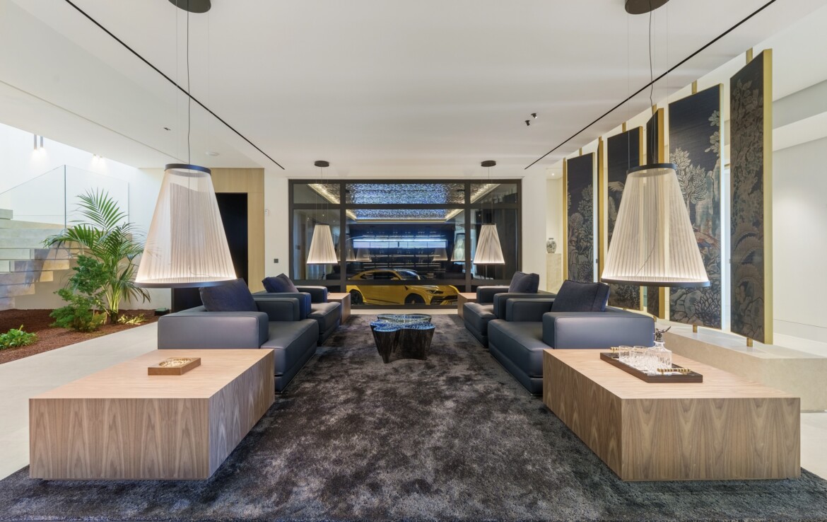 La planta baja ofrece casi 800 m² de espacio suntuoso, diseñado para aprovechar al máximo la luz natural y las vistas a través de sus amplios ventanales. Aquí encontrará varias salas de estar para relajarse o recibir invitados, una sala de juegos, una sala de cine, un gimnasio totalmente equipado y un spa interior con piscina y jacuzzi.