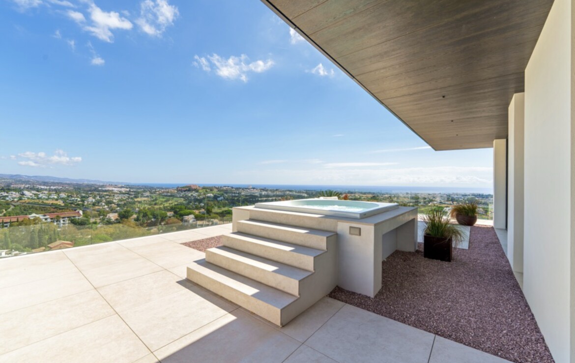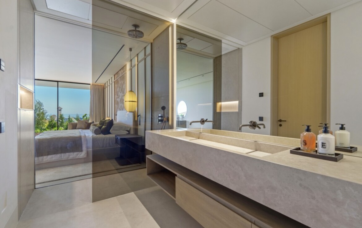 En la planta superior, encontrará tres habitaciones adicionales con baño privado, incluyendo una magnífica suite principal de más de 70 m². La suite principal cuenta con un vestidor, un lujoso baño y una terraza privada con jacuzzi con vistas a un paisaje impresionante.