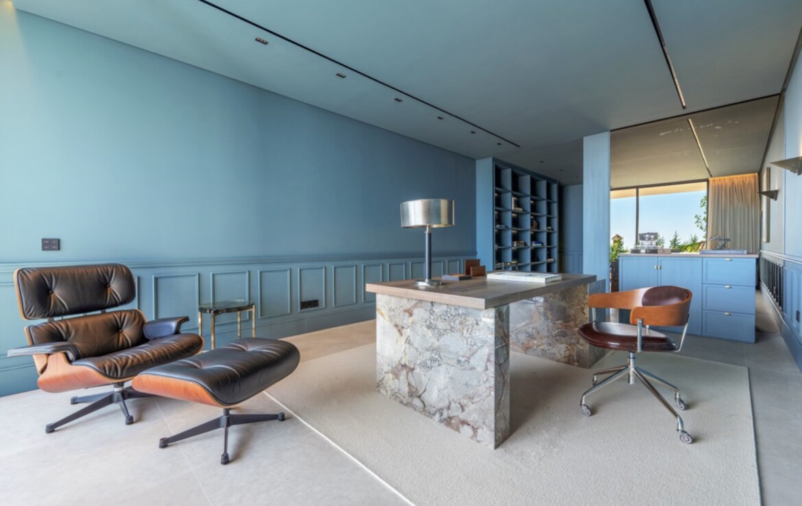 Además, la propiedad incluye una oficina, un garaje con capacidad para seis coches y tres dormitorios adicionales con baño privado; uno de ellos con entrada independiente y cocina americana, ideal para el personal de servicio o los invitados.