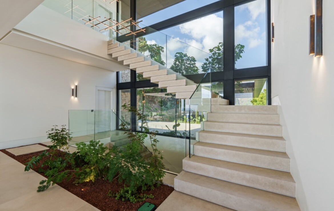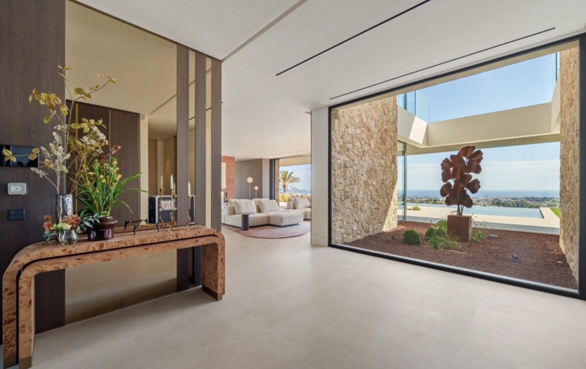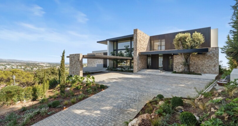 El recorrido comienza por las pintorescas calles arboladas de la exclusiva urbanización cerrada El Herrojo Alto, que le conducirán a la majestuosa entrada de esta extraordinaria residencia. Un amplio camino de acceso le da la bienvenida a una casa de estilo moderno y elegante, con detalles en materiales naturales.