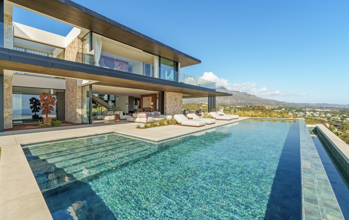 Obra maestra arquitectónica con vistas panorámicas al mar en Herrojo Alto, Benahavís