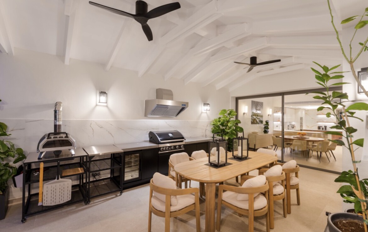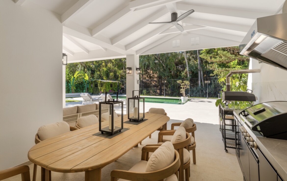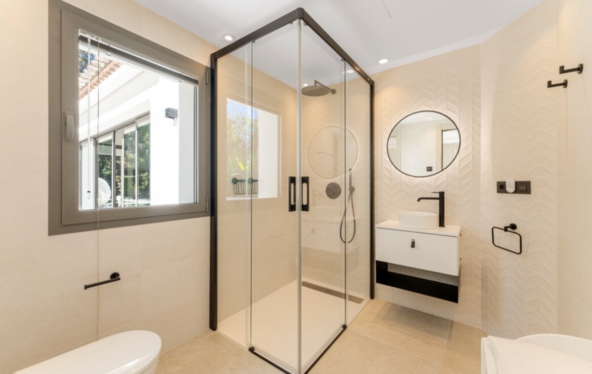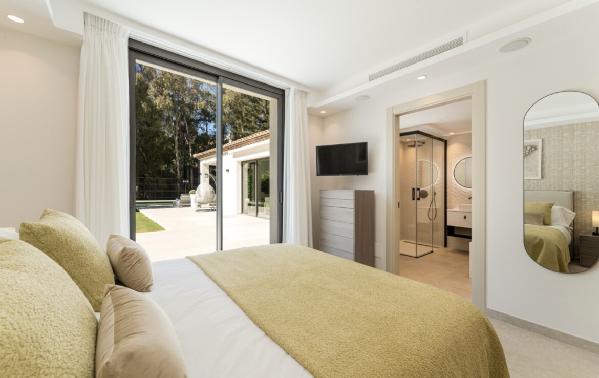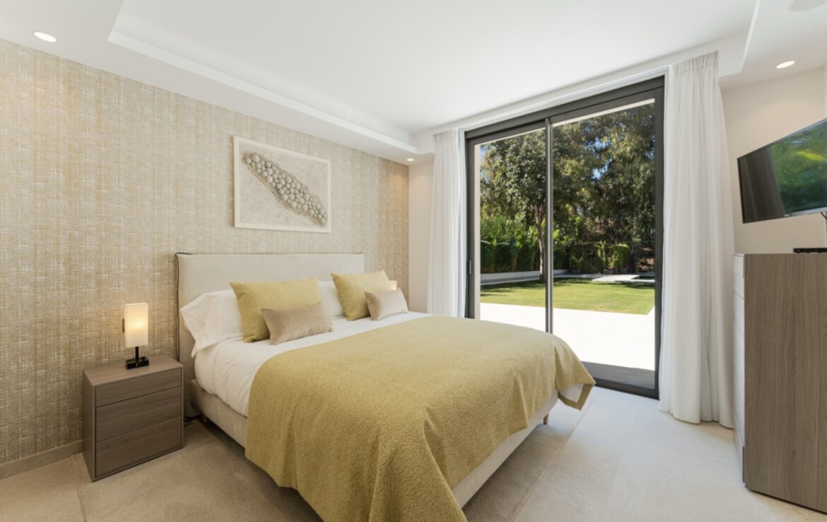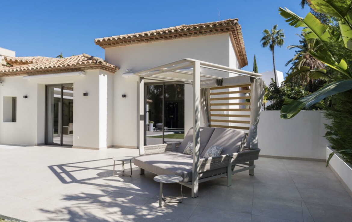 En el exterior, la villa sigue impresionando. Unos jardines con un hermoso diseño paisajístico rodean una piscina privada, preinstalada para calefacción, lo que permite disfrutarla durante todo el año. Las terrazas cuentan con una cocina exterior, un comedor y una zona chill-out, ideales para disfrutar del aire libre. La villa ofrece total privacidad y amplitud, manteniendo una estrecha conexión con el entorno natural, creando un auténtico oasis en una de las urbanizaciones más exclusivas de Nueva Andalucía.