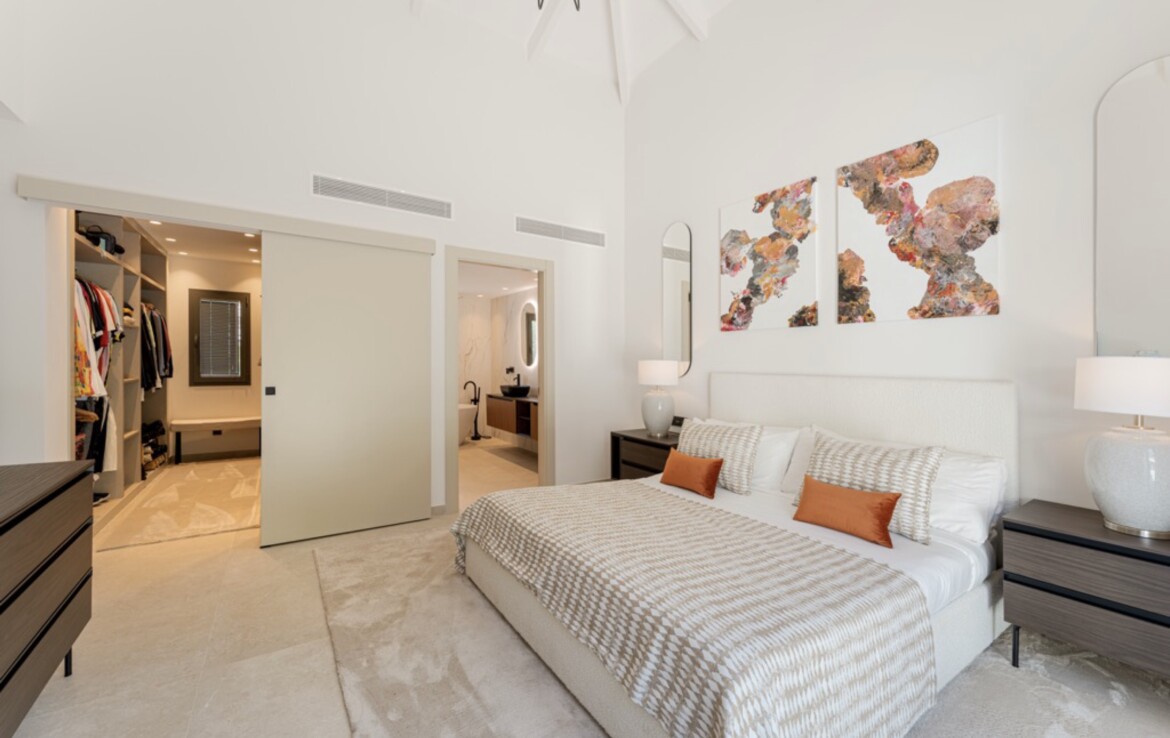 Esta residencia está diseñada para capturar la luz, el confort y la sofisticación en cada espacio. Ubicada en el corazón del prestigioso Valle del Golf de Nueva Andalucía, Villa Camelia está rodeada por algunos de los campos de golf más emblemáticos de la Costa del Sol, como Los Naranjos, Las Brisas y Aloha Golf Club. La zona es famosa por su belleza paisajística, su ambiente refinado y su proximidad a servicios de primer nivel. A tan solo 10 minutos en coche del exclusivo complejo turístico de Puente Romano, con restaurantes como Nobu, Sea Grill y Coya, Villa Camelia garantiza un estilo de vida que combina tranquilidad y comodidad.