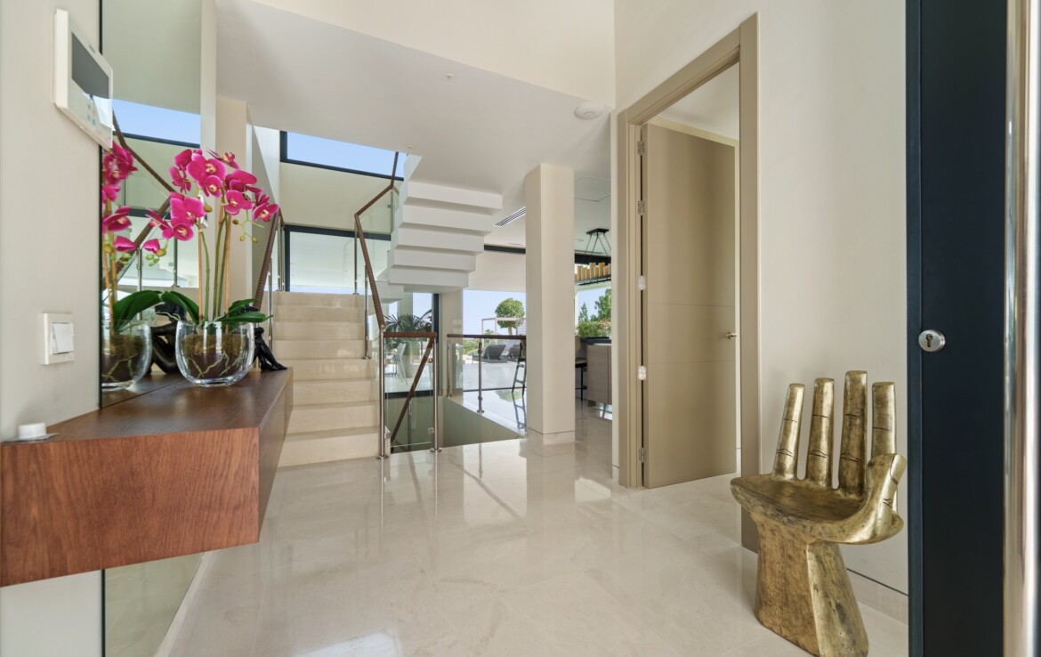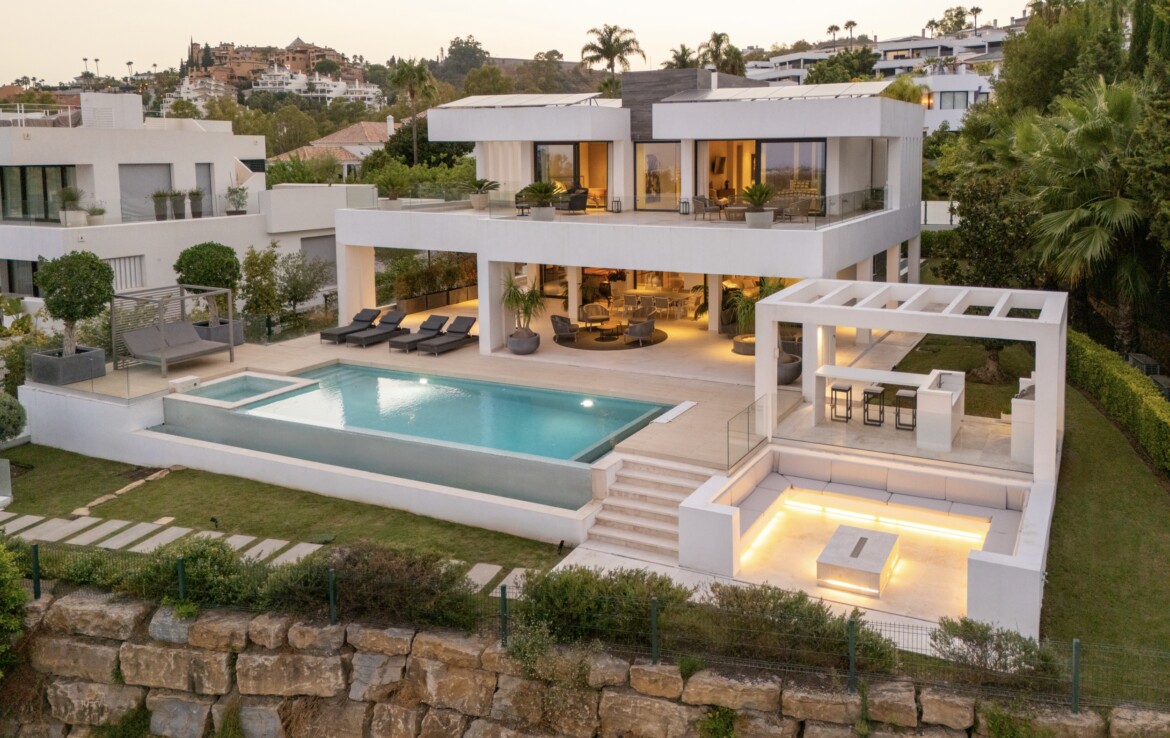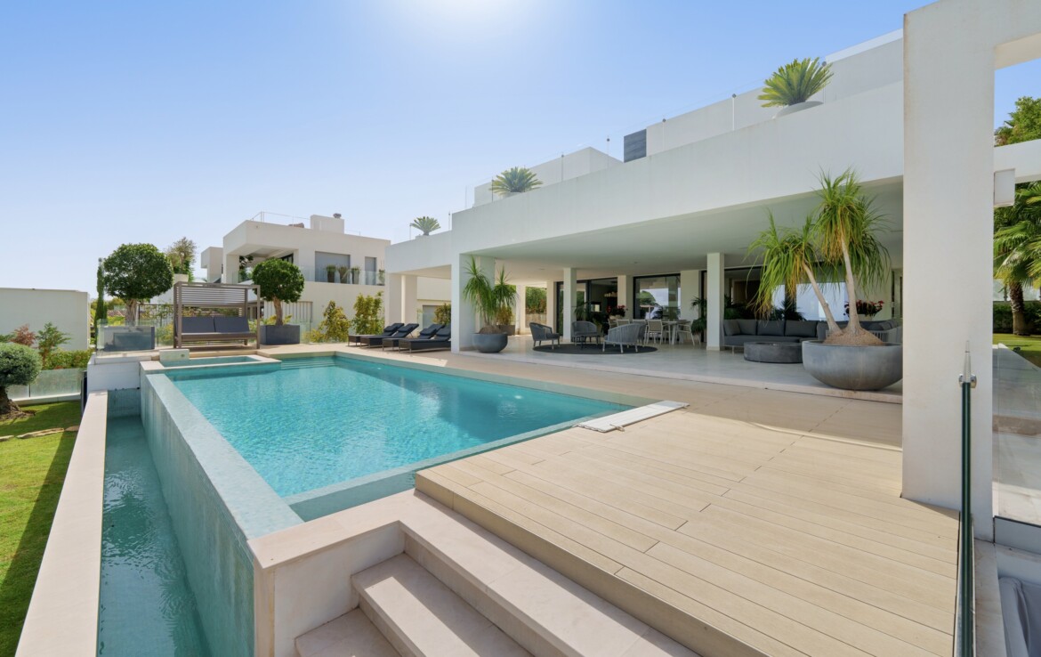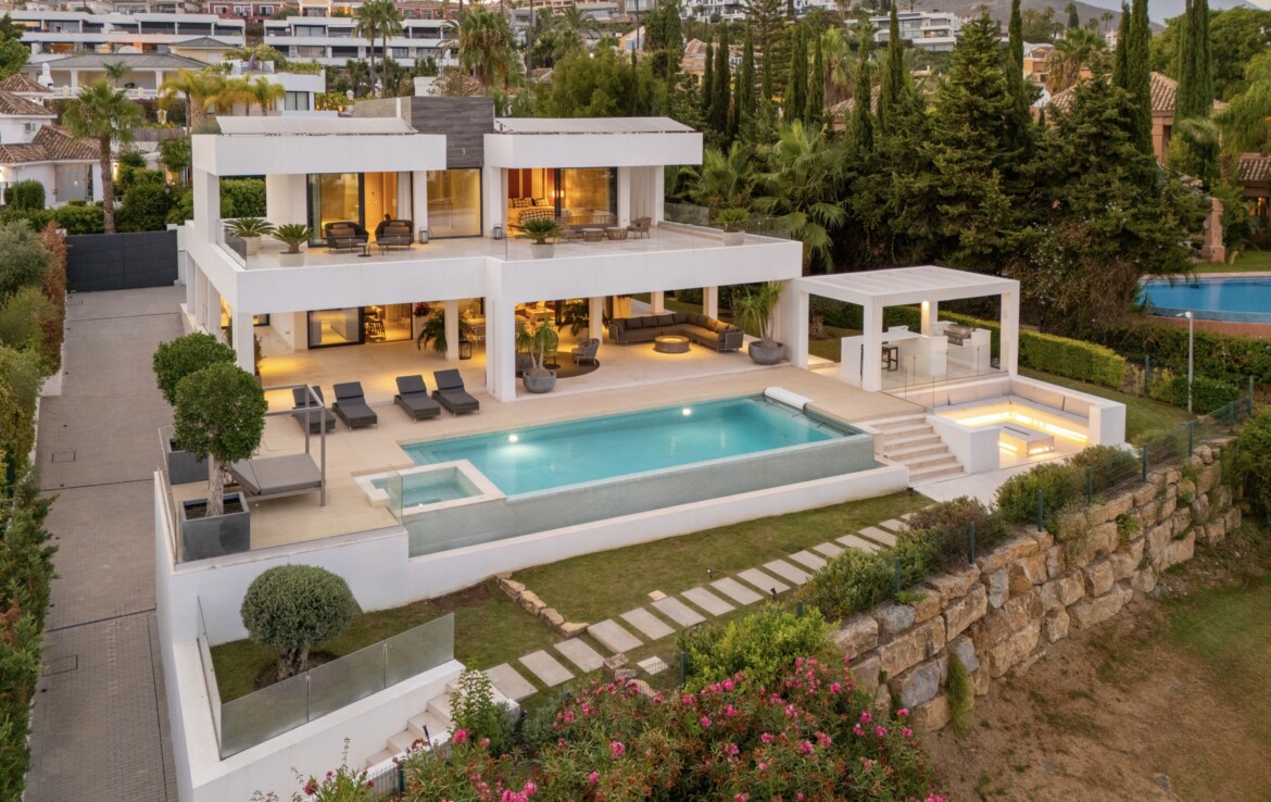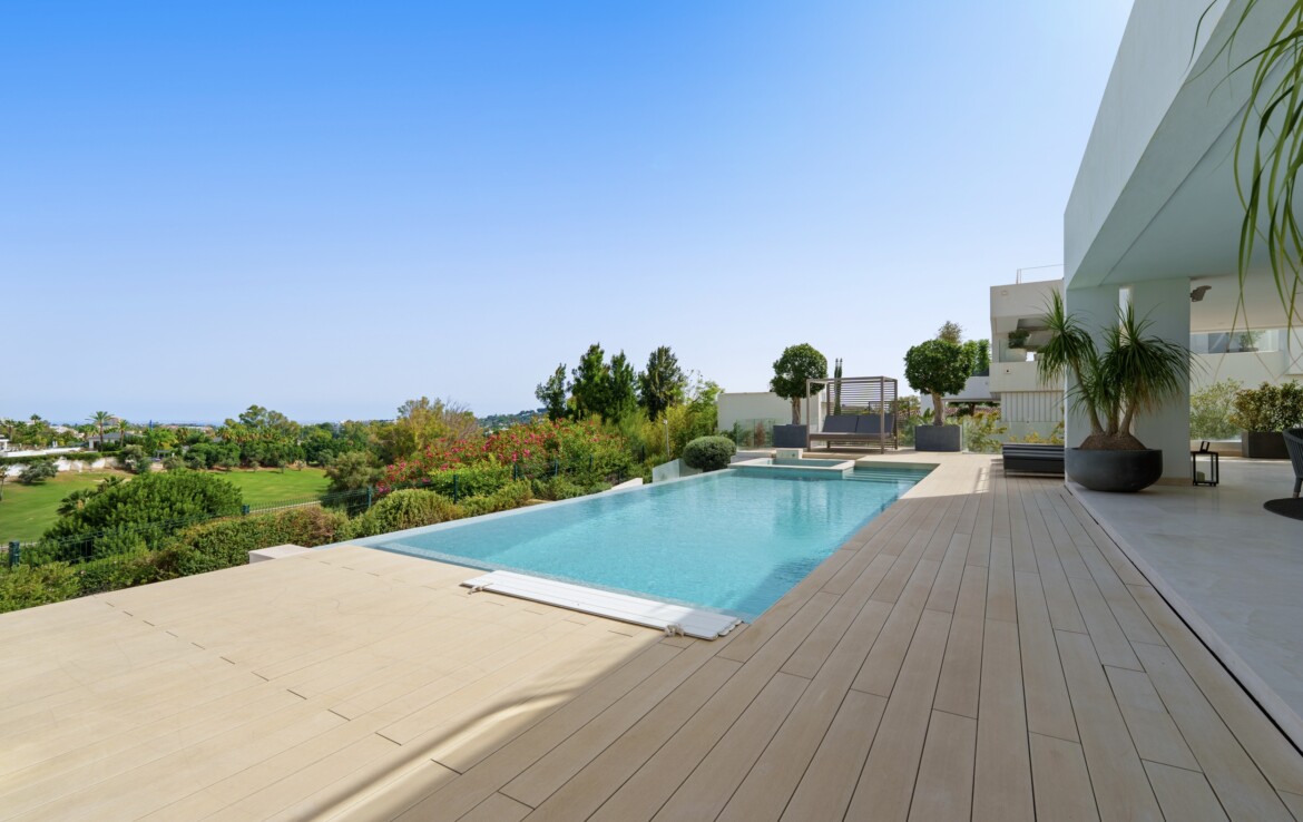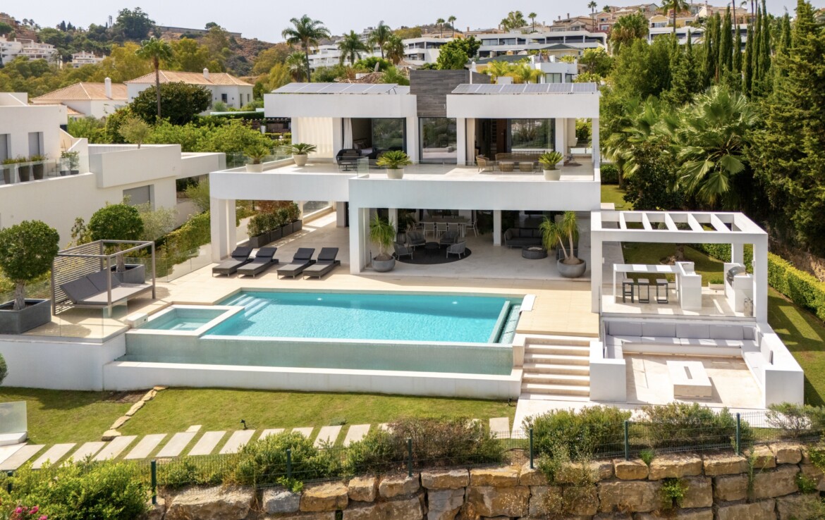 Presentamos Leo, una impresionante villa contemporánea en el corazón de Nueva Andalucía, con una ubicación privilegiada en primera línea de golf. Con líneas arquitectónicas limpias, amplias terrazas y ventanales de suelo a techo, esta casa está diseñada para maximizar la luz natural y disfrutar de vistas panorámicas a los campos de golf, ofreciendo una combinación perfecta de vida interior y exterior.