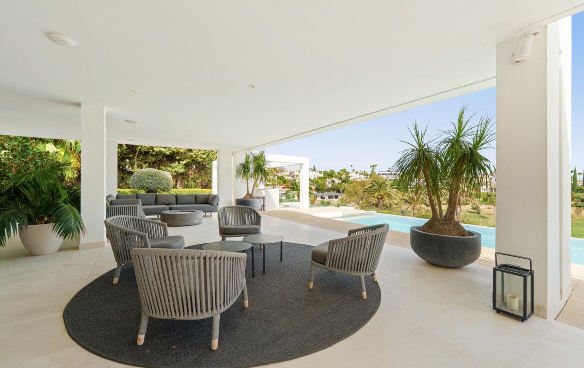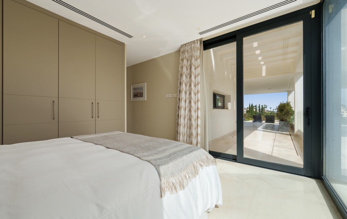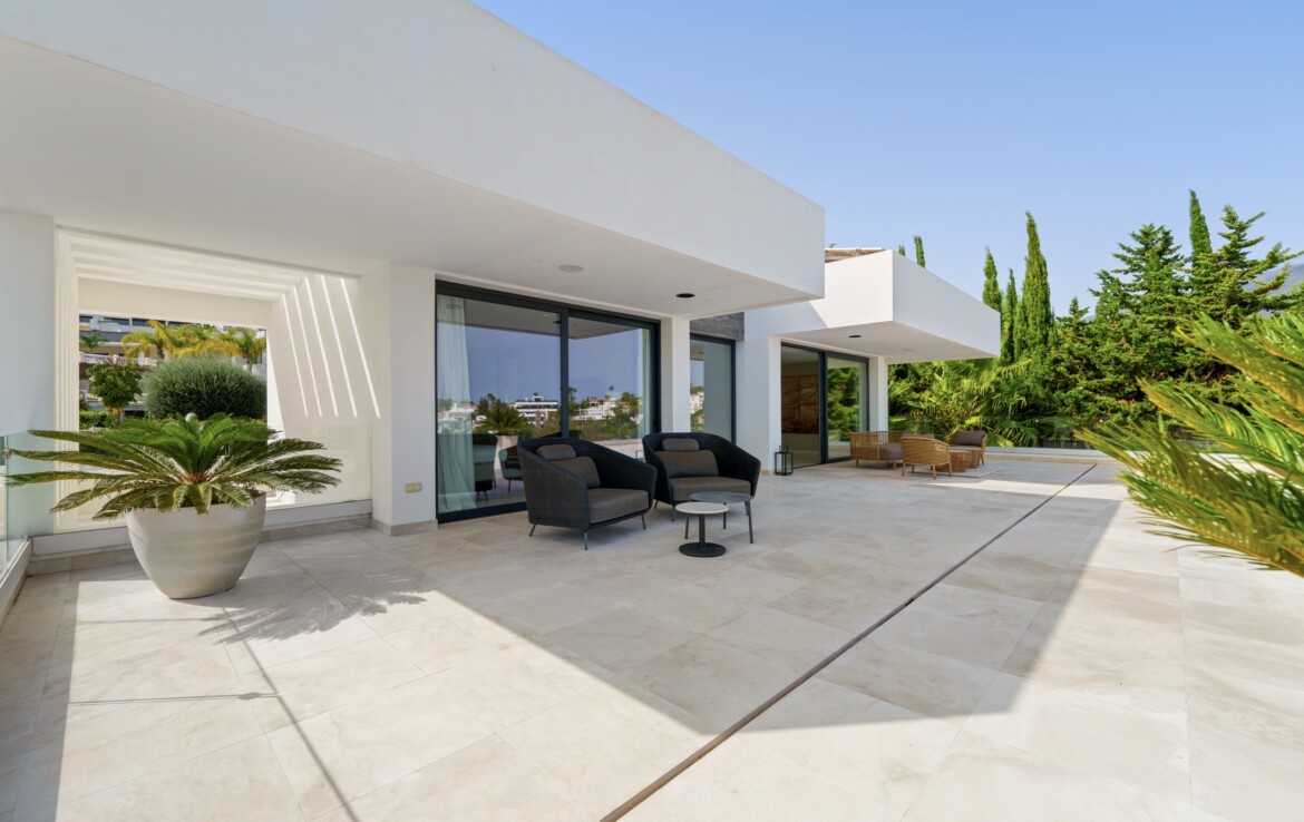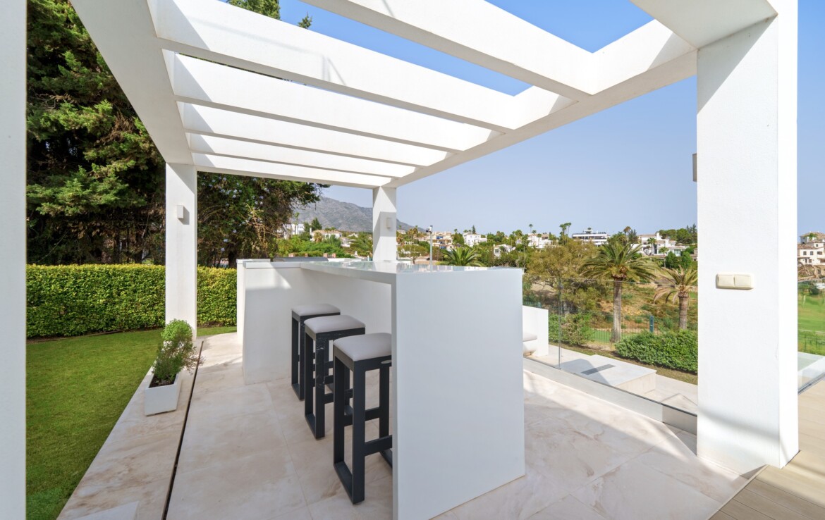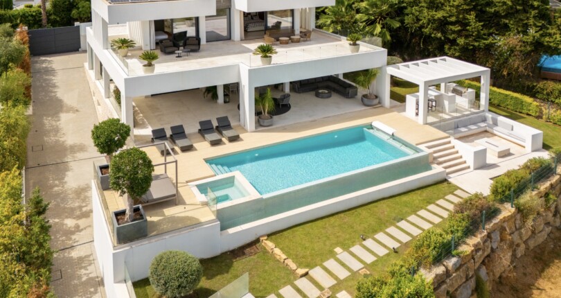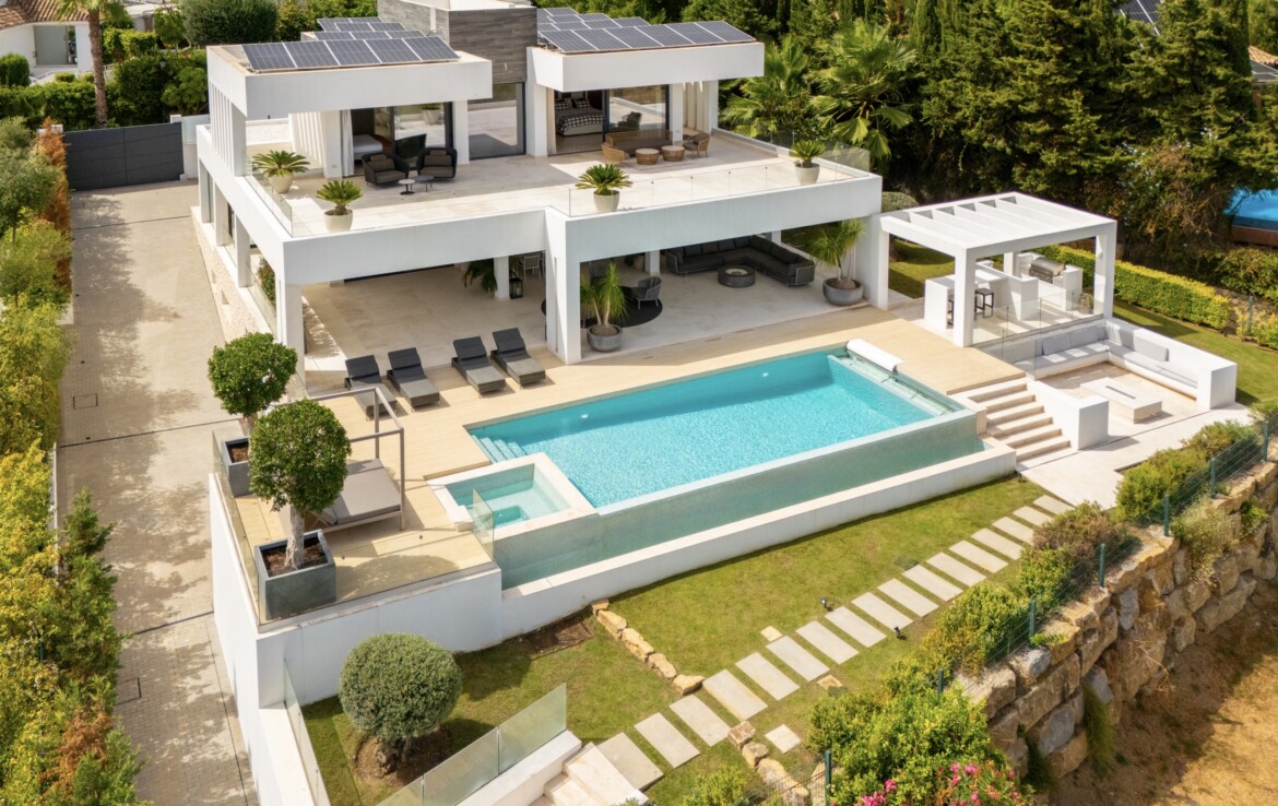 Presentamos Leo, una impresionante villa contemporánea en el corazón de Nueva Andalucía, con una ubicación privilegiada en primera línea de golf. Con líneas arquitectónicas limpias, amplias terrazas y ventanales de suelo a techo, esta casa está diseñada para maximizar la luz natural y disfrutar de vistas panorámicas a los campos de golf, ofreciendo una combinación perfecta de vida interior y exterior.