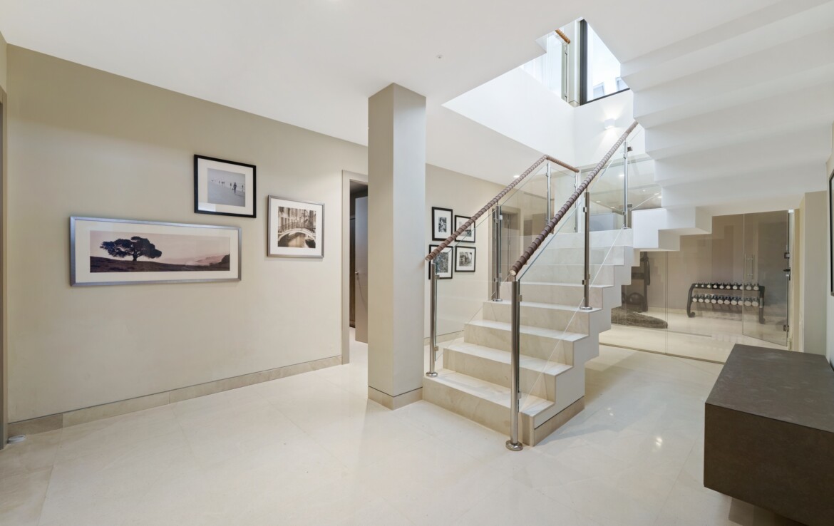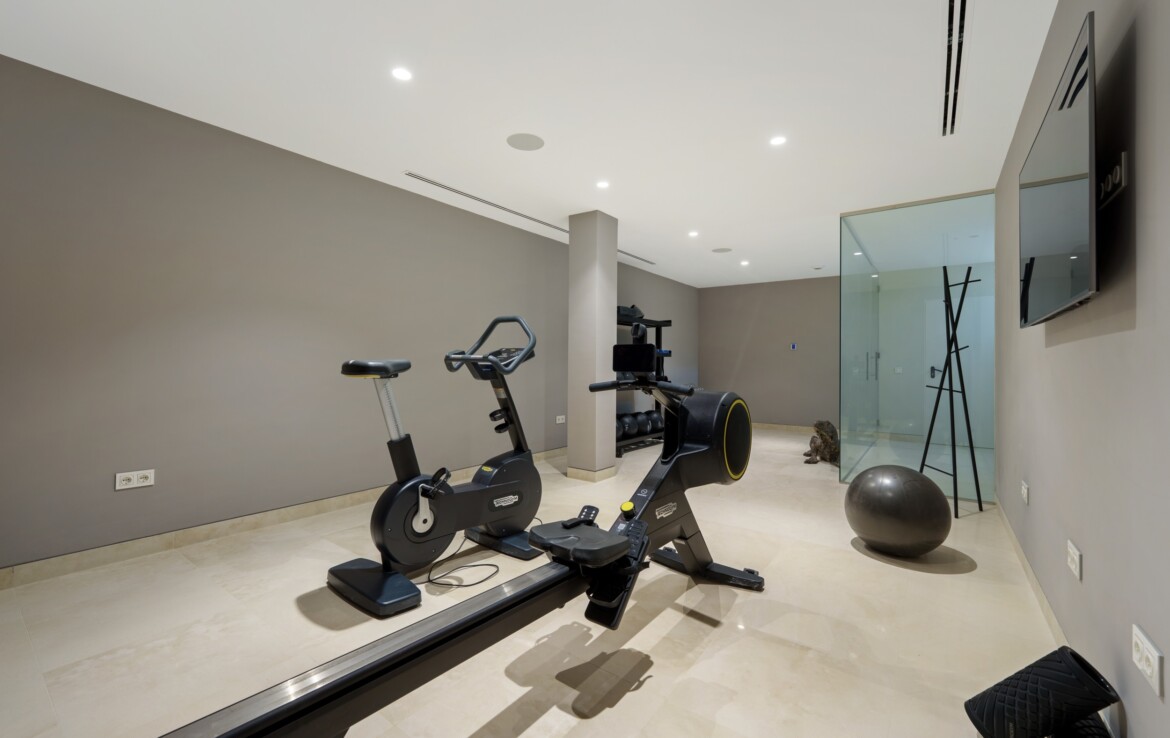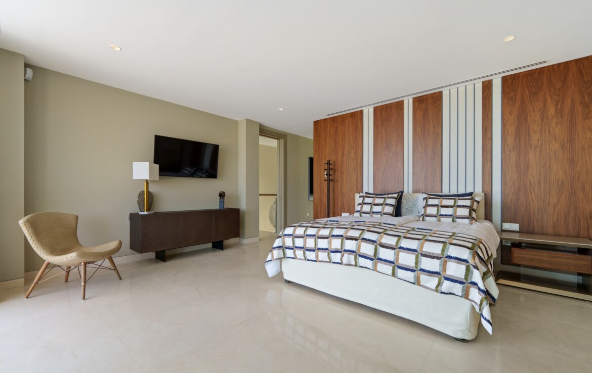 Distribuida en tres niveles, la villa ofrece seis lujosos dormitorios y ocho baños, incluyendo una suite principal con terraza privada y baño estilo spa. Los interiores cuentan con una espaciosa sala de estar de planta abierta, una cocina de diseño con acabados elegantes y un comedor perfecto para el entretenimiento. Un gimnasio privado, una bodega y elegantes salas de estar elevan la experiencia de vida, garantizando comodidad y sofisticación en todo momento.