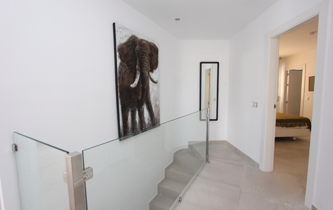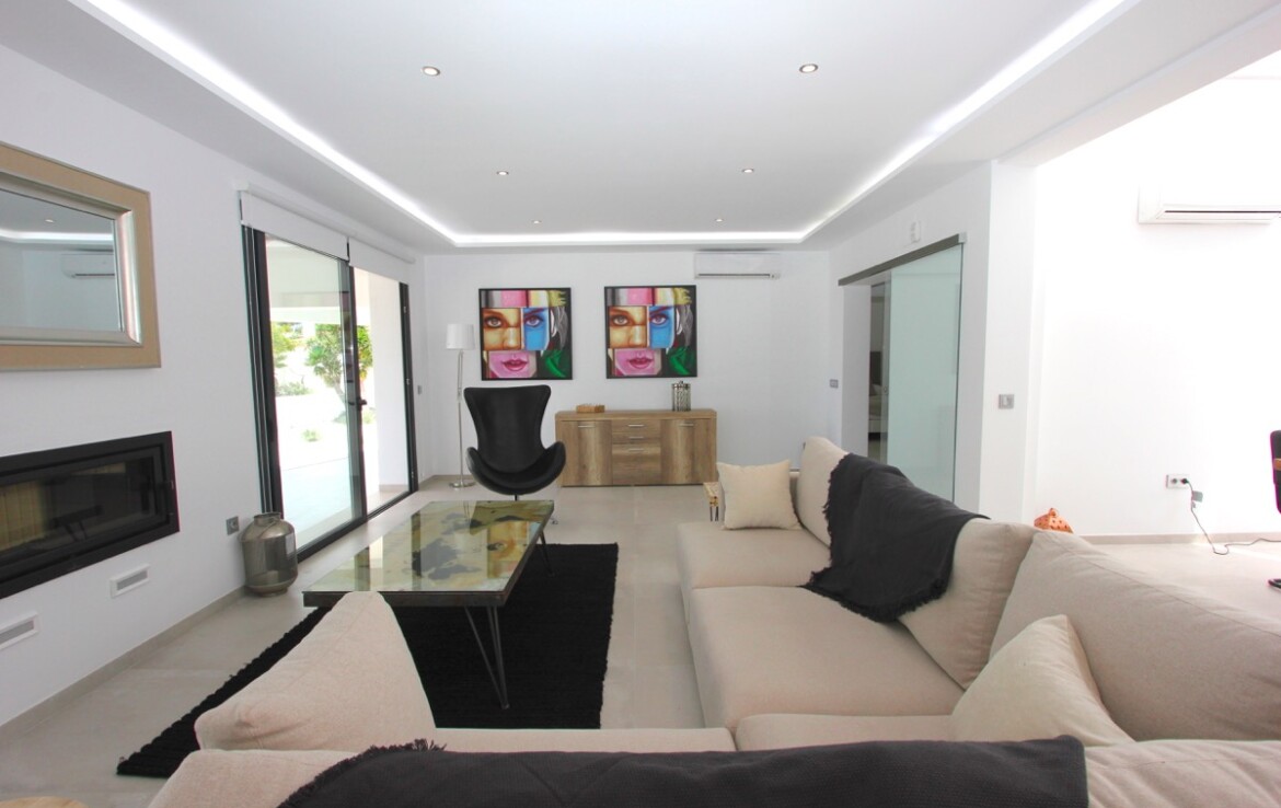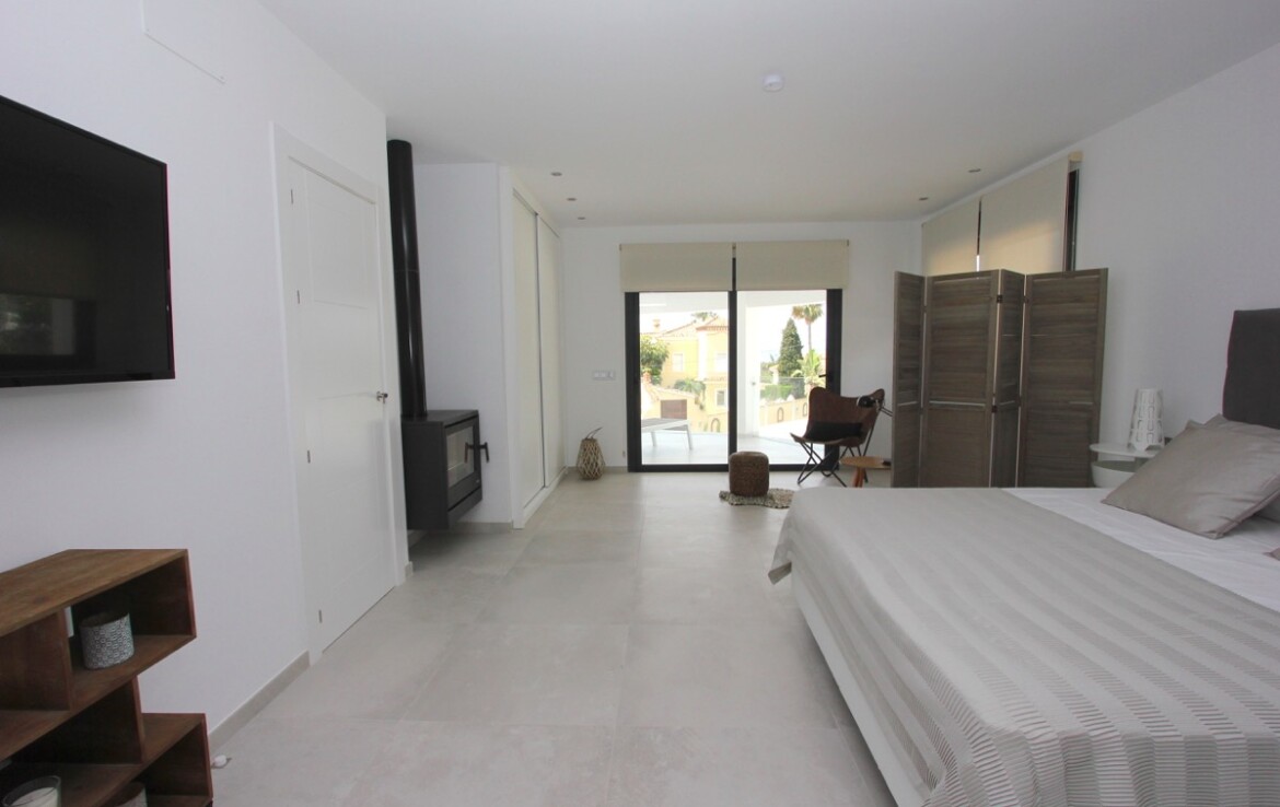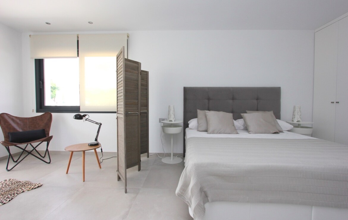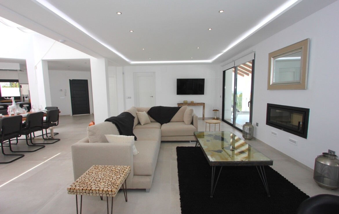 Ubicada en una parcela rectangular con su lado más largo orientado al sur, la propiedad disfruta de excelentes vistas panorámicas al mar. La villa se ha construido en uno de los laterales de la parcela, lo que permite un amplio jardín con zona de piscina, ideal para disfrutar del clima mediterráneo.