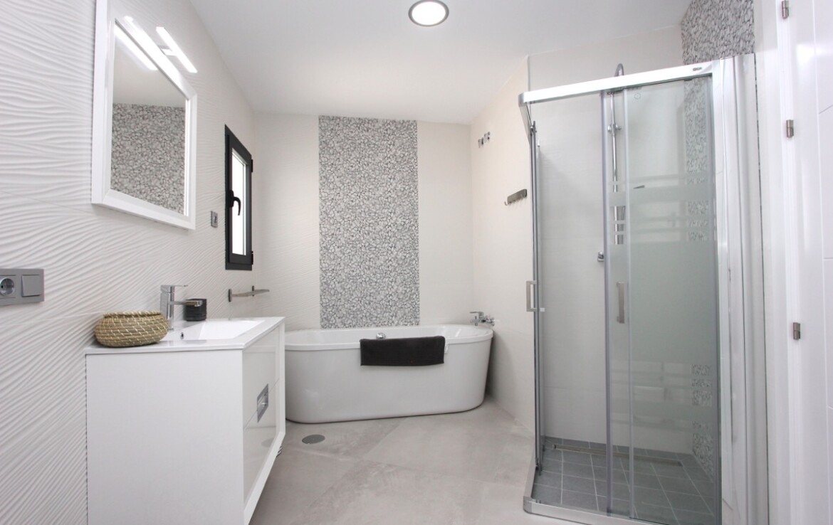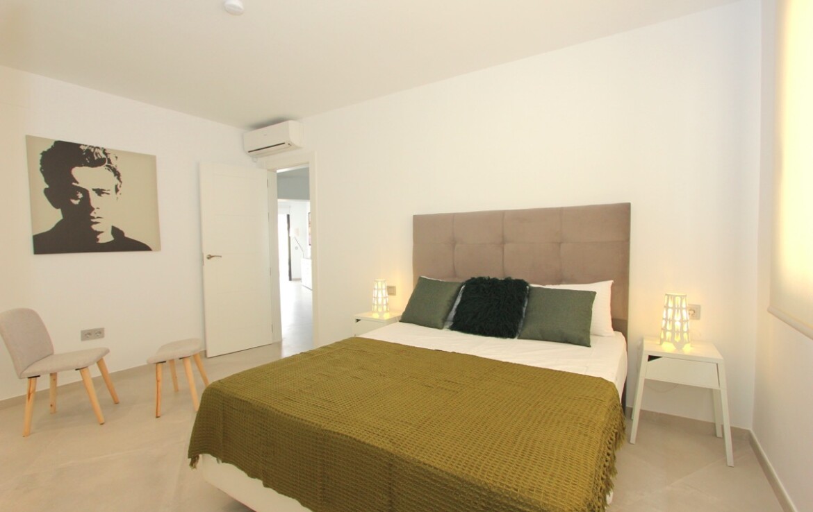 Equipamiento y extras: aire acondicionado frío/calor, suelo radiante en los baños, conexión a internet, televisión con canales internacionales, jardín con sistema de riego automático, garaje para un vehículo y zona de aparcamiento exterior para tres coches.