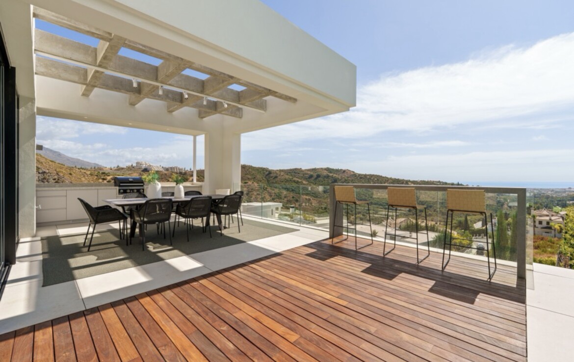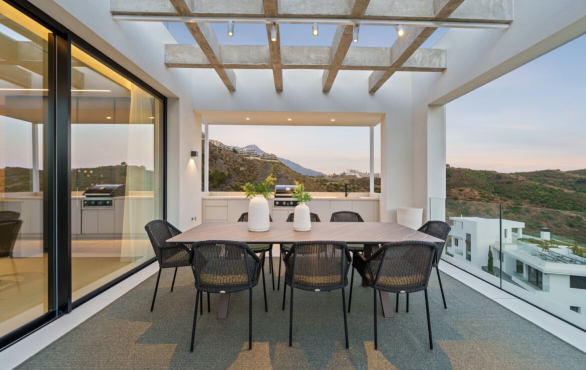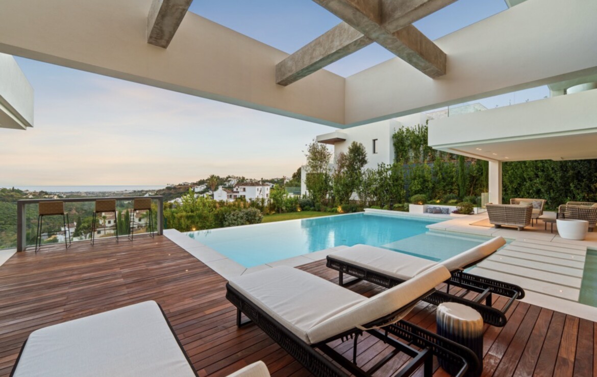 Exteriormente, La Quinta 20 ofrece amplias terrazas, jardines paisajísticos y una piscina infinita con vistas al valle circundante. La combinación de amplitud, ubicación y comodidades hace de esta casa una propiedad excepcional en la zona, atractiva para compradores que buscan una vivienda moderna de alta calidad en una de las urbanizaciones privadas más exclusivas de Benahavís.