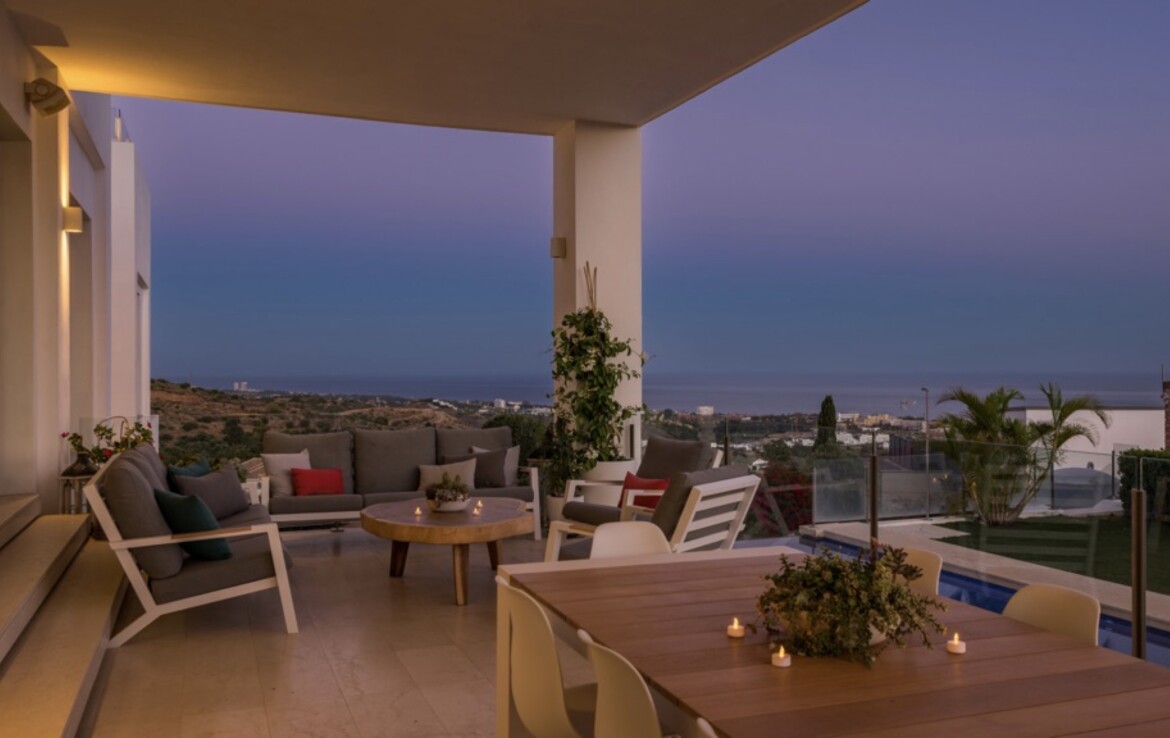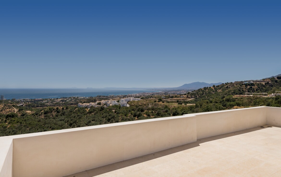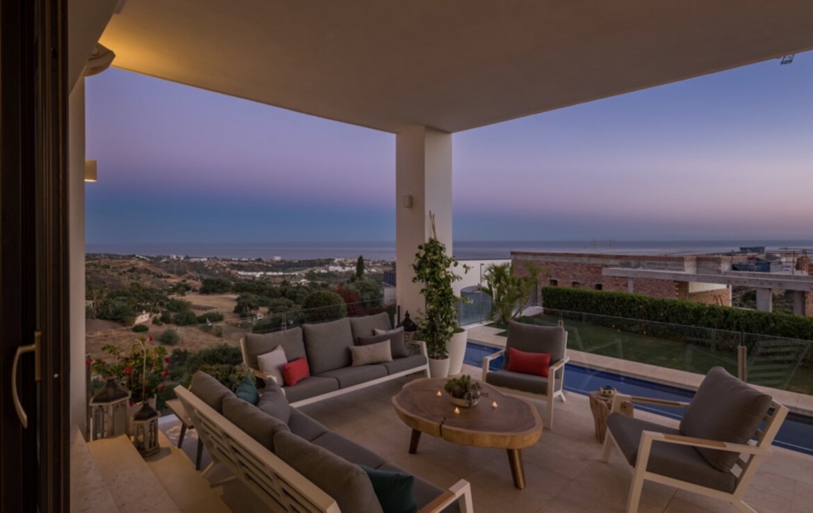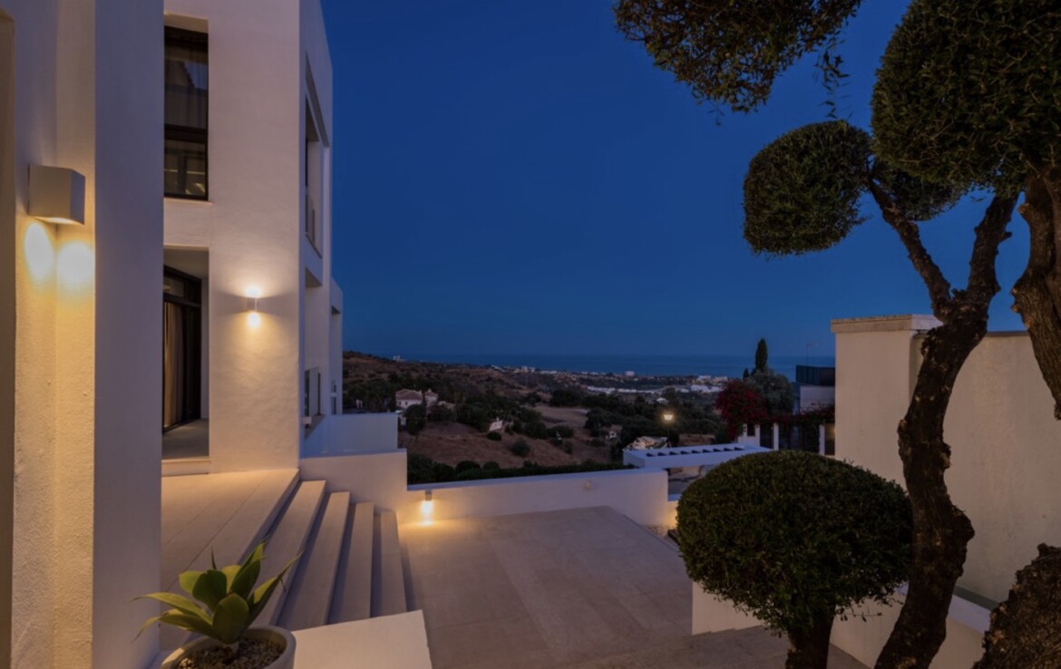 Con orientación sur, la villa disfruta de luz solar durante todo el día, desde el amanecer hasta las espectaculares puestas de sol sobre la bahía de Marbella. Las vistas panorámicas se extienden por la costa hacia Gibraltar y la costa norteafricana.