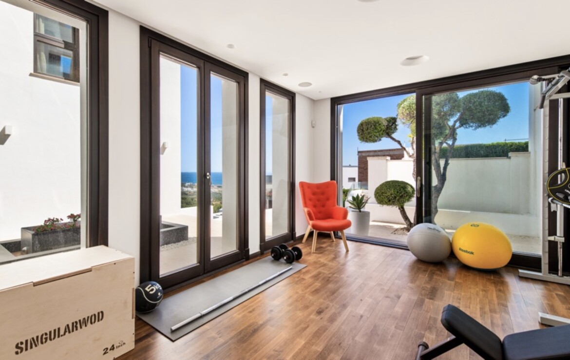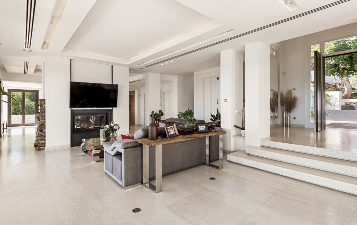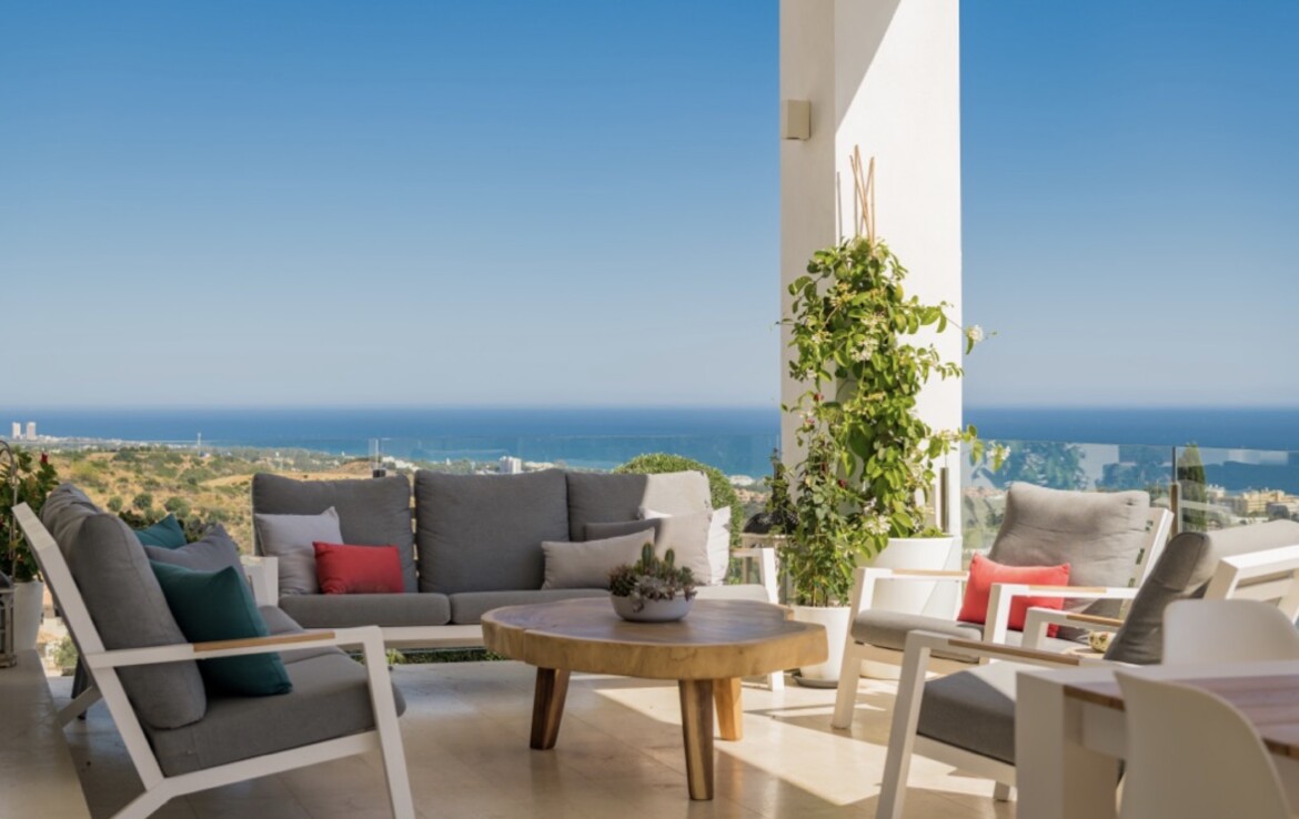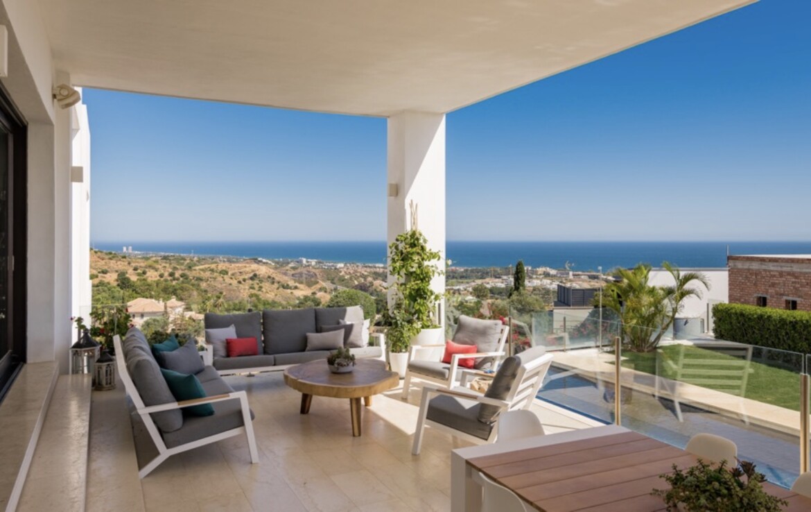 Con orientación sur, la villa disfruta de luz solar durante todo el día, desde el amanecer hasta las espectaculares puestas de sol sobre la bahía de Marbella. Las vistas panorámicas se extienden por la costa hacia Gibraltar y la costa norteafricana.