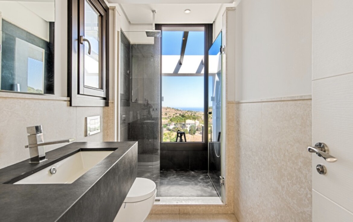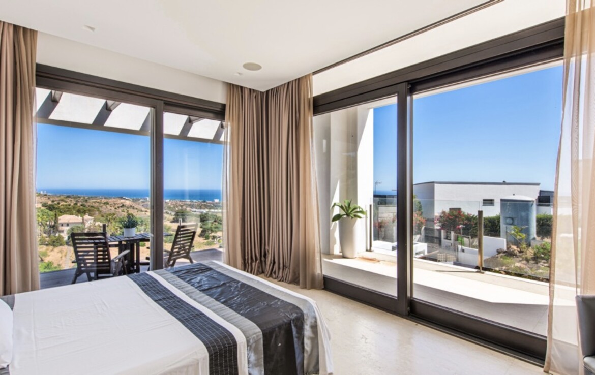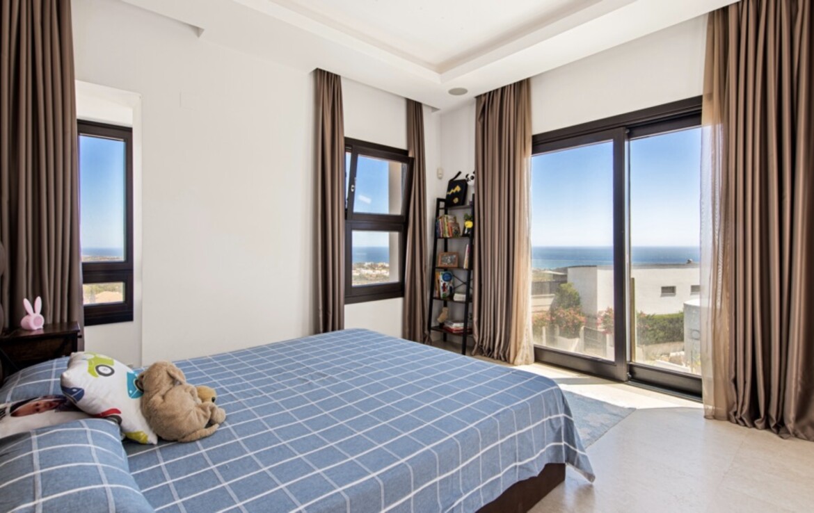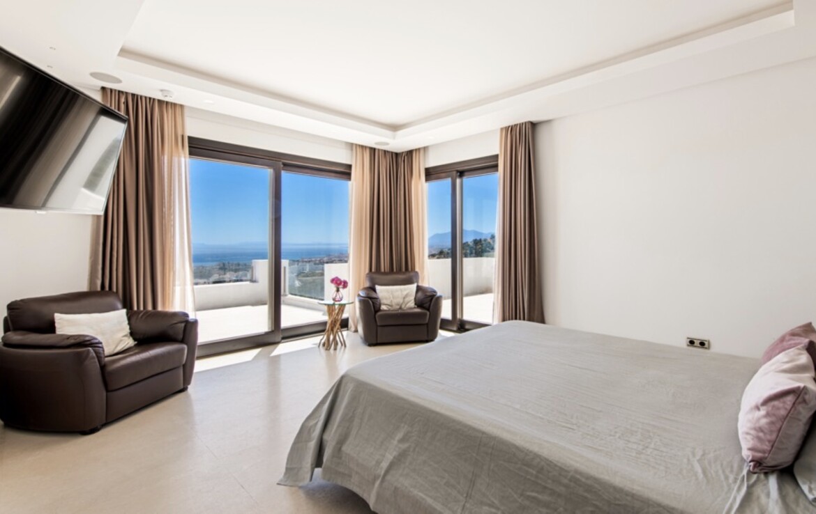 Esta impresionante villa cuenta con 5 dormitorios con baño en suite, todos con vistas panorámicas al Mediterráneo.