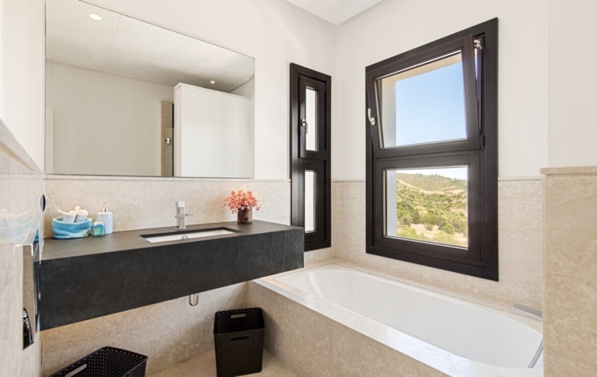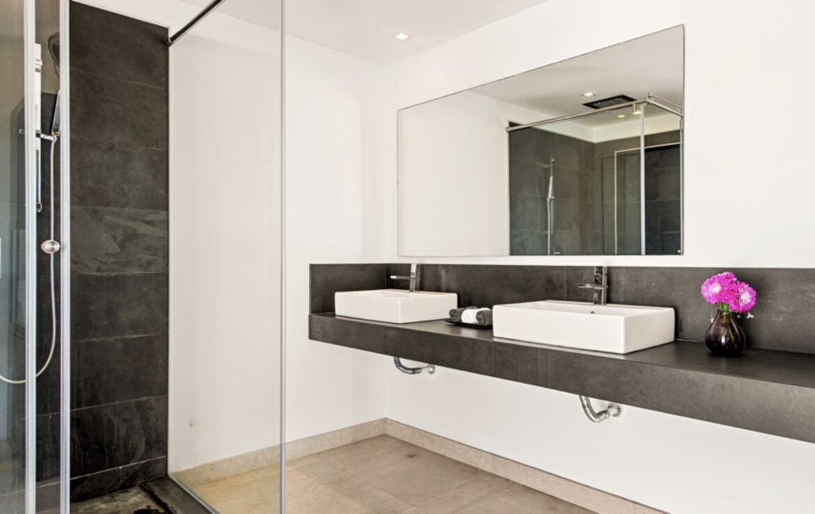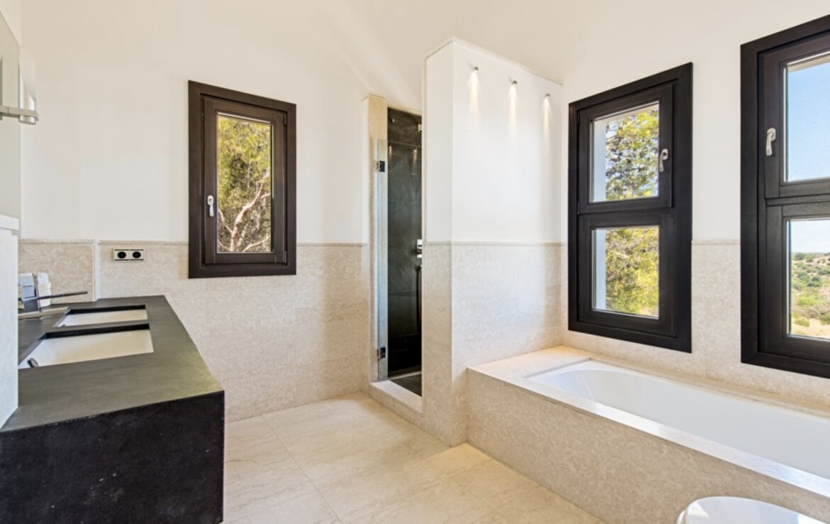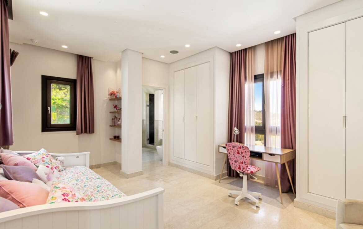 Esta impresionante villa cuenta con 5 dormitorios con baño en suite, todos con vistas panorámicas al Mediterráneo.
