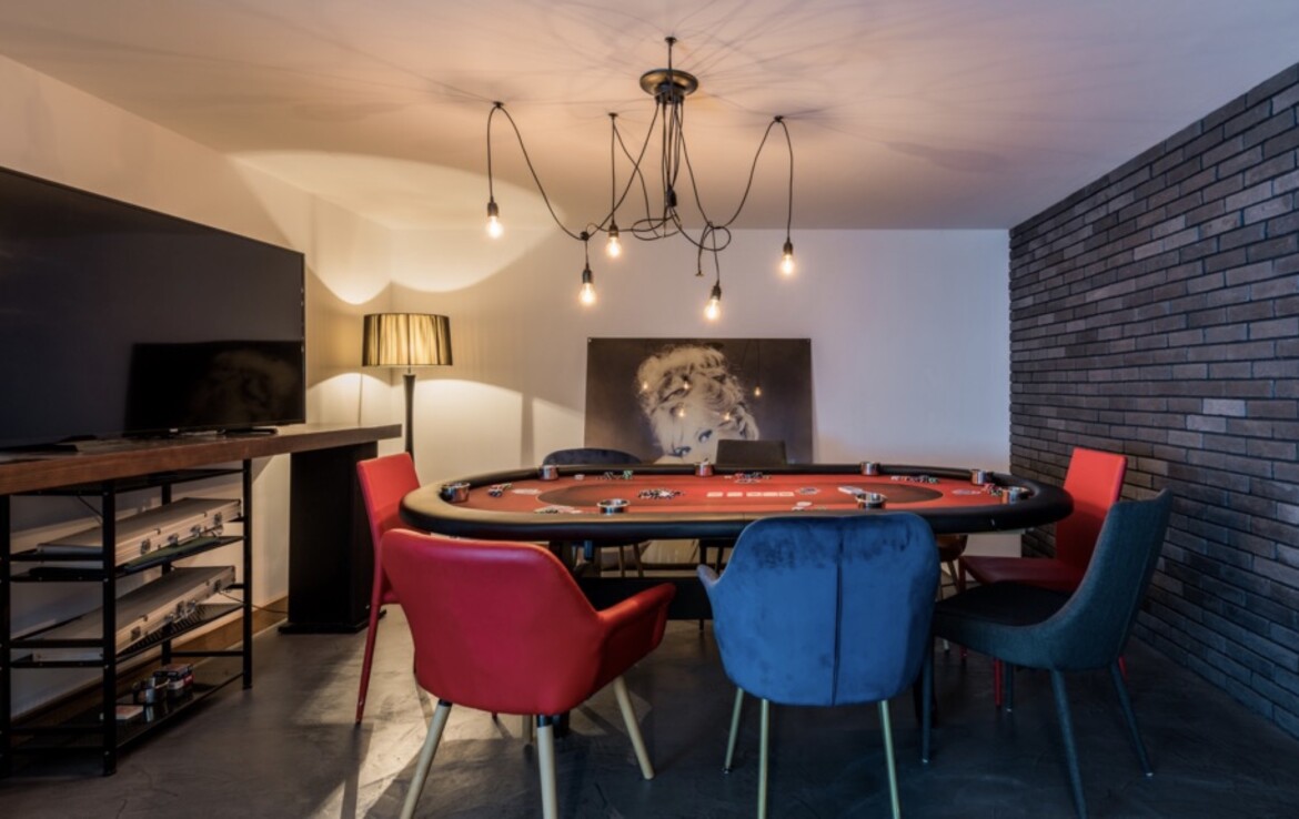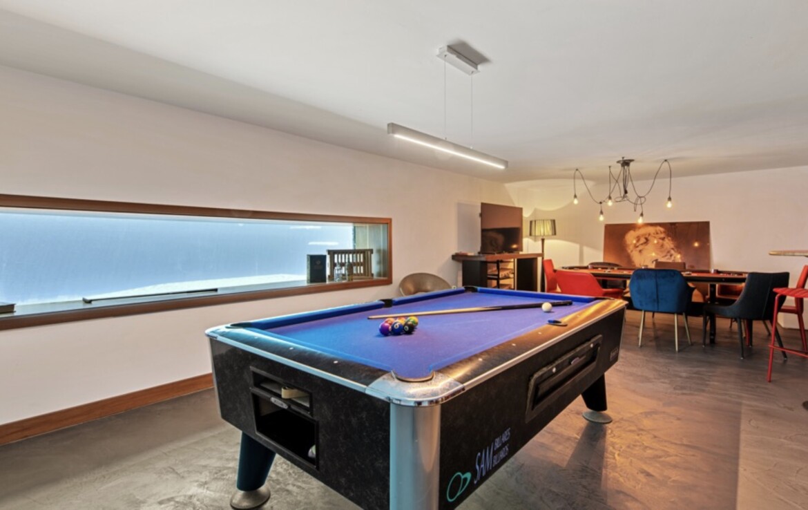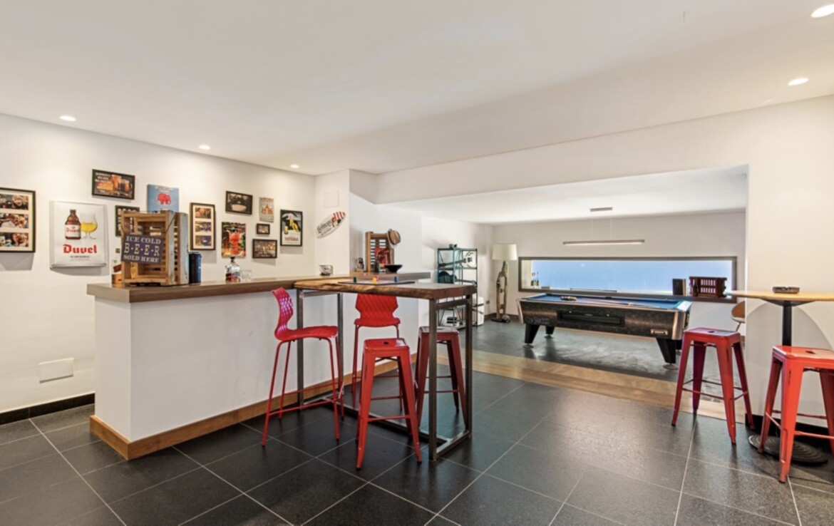 El sótano, destinado a sala de entretenimiento, incluye una sala de cine, bar, mesa de billar, zona de póker, gimnasio y baño de vapor, además de un garaje para 5 coches.