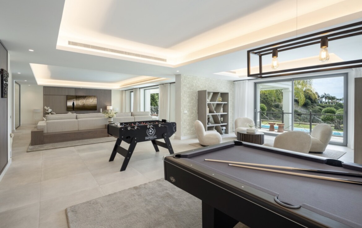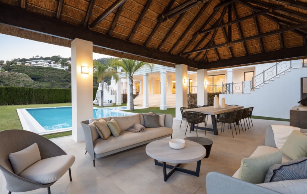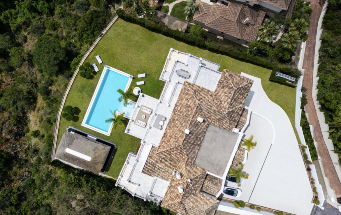 En el exterior, el jardín alberga una preciosa piscina y una pérgola con cocina, ideal para disfrutar de deliciosas cenas y comidas al aire libre. El Madroñal es una urbanización exclusiva en Marbella con seguridad las 24 horas. La zona cuenta con amplias villas rodeadas de exuberante vegetación, que ofrecen máxima independencia, privacidad y tranquilidad. A pesar de su entorno sereno, la playa, Puerto Banús, San Pedro de Alcántara y Marbella se encuentran a tan solo 10 minutos en coche.