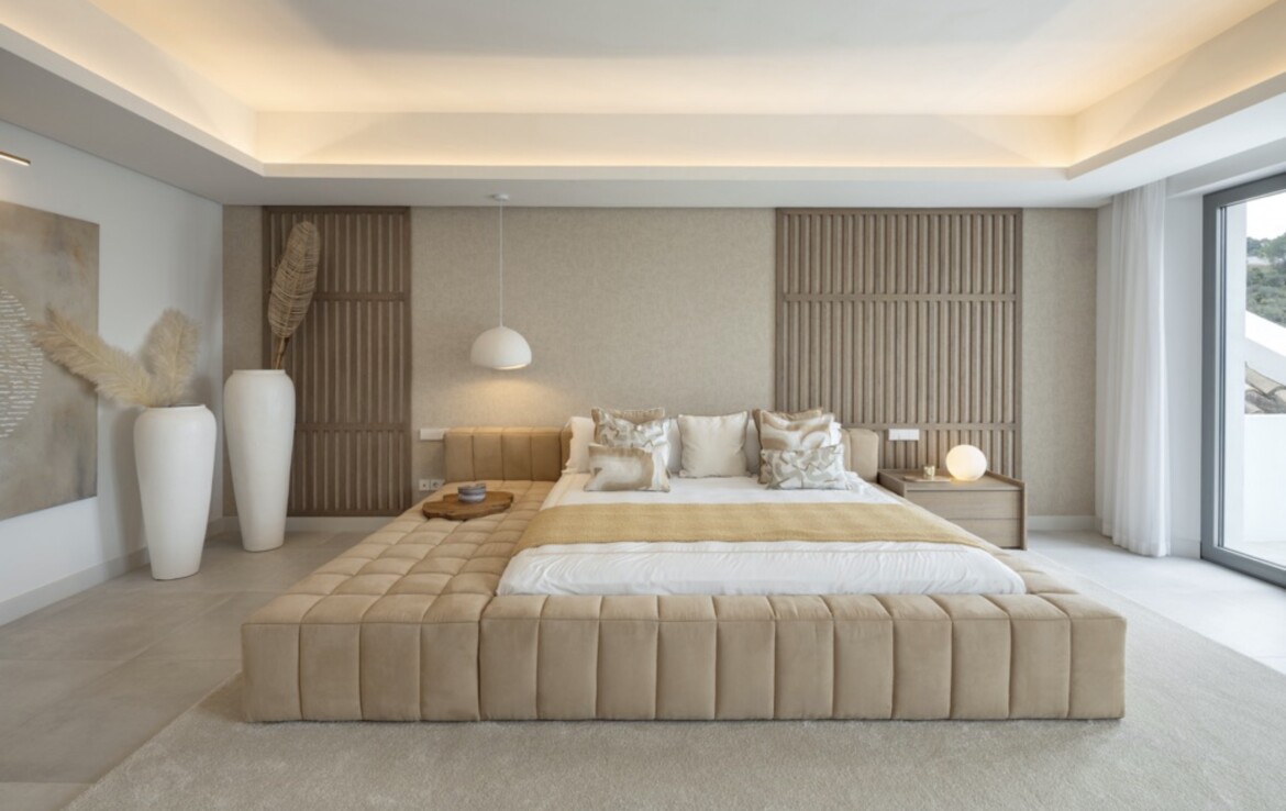La segunda planta dispone de tres dormitorios con baño privado, incluyendo una suite principal con vestidor y un lujoso baño. Los tres dormitorios tienen acceso a terrazas privadas.