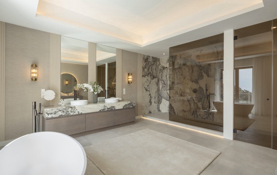 Esta excepcional propiedad se asienta sobre una extensa parcela de más de 5.000 m², con una superficie habitable total de 1.372 m² y 300 m² de terrazas. Distribuida en tres plantas sobre rasante, cada una con espléndidas vistas al mar.